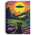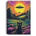Psychedelic Art Style Of A Cat, Taking A Selfie With UFO Invasion, On The Field Canvas