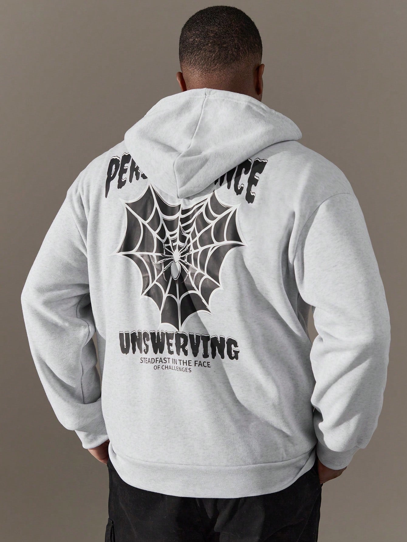Quintessentially Cool: Plus Size Spider Web Print Drawstring Hoodie for Men