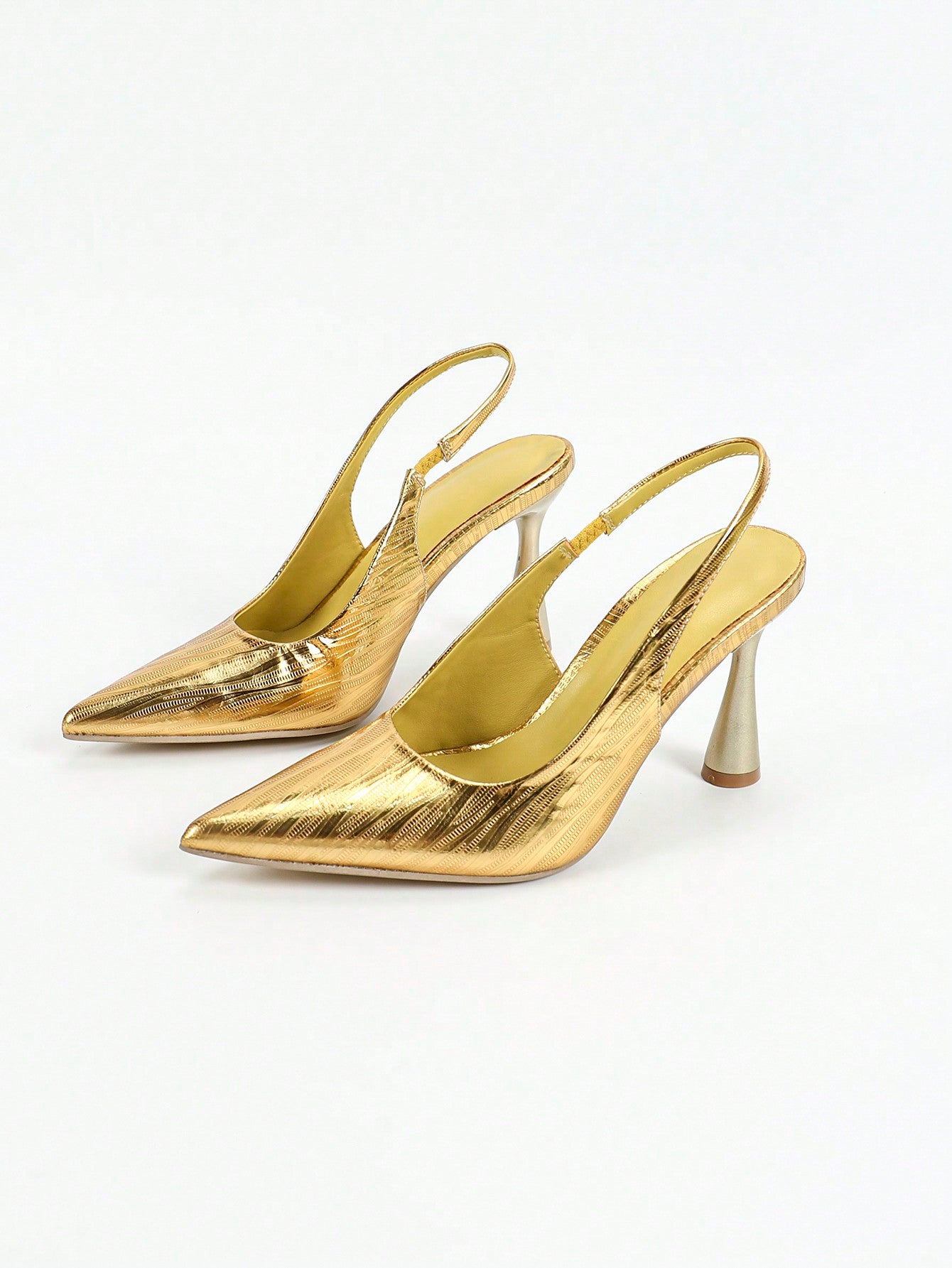 Step out in style with Radiant Elegance: Women's Summer Metallic Pointed Toe Stiletto Mules. These shoes combine fashion and function with a sleek pointed toe design and a comfortable stiletto heel. Perfect for any evening event, these mules will add a touch of elegance to your summer wardrobe.