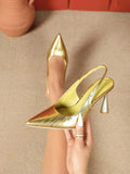 Radiant Elegance: Women’s Summer Metallic Pointed Toe Stiletto Mules for Perfect Evening Style