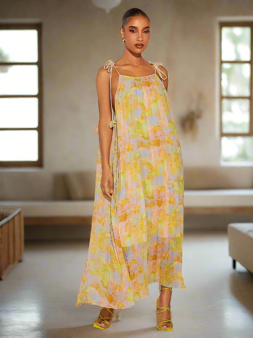 Radiant Pleated Print Tie-Strap Dress: Your Summer Must-Have
