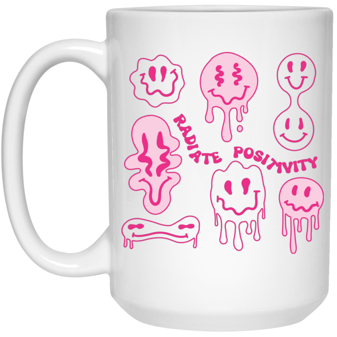 Radiate Positivity, Groovy Smile Face, Radiate Positivity Energy White Mug