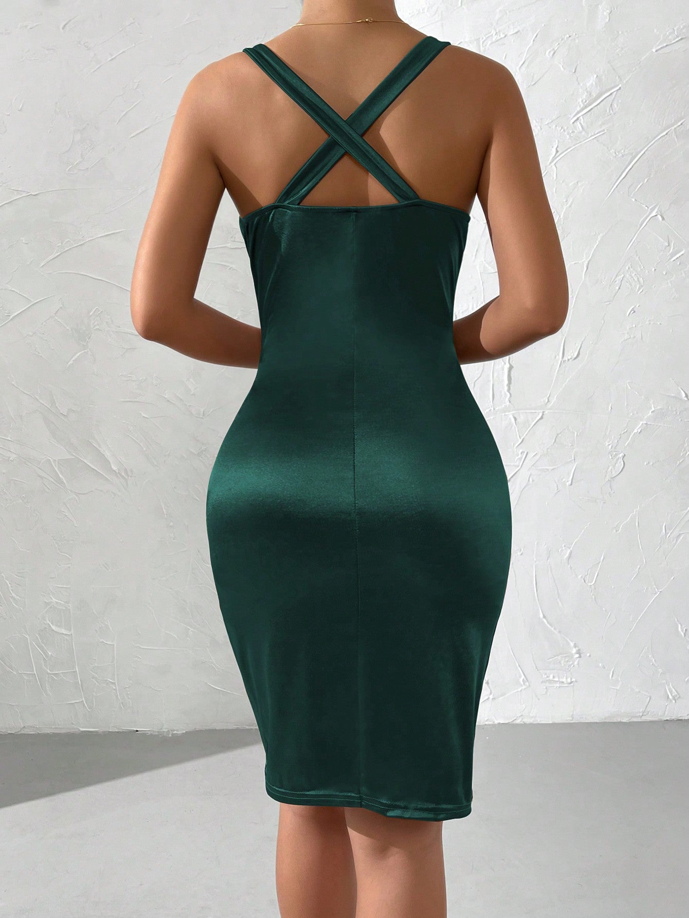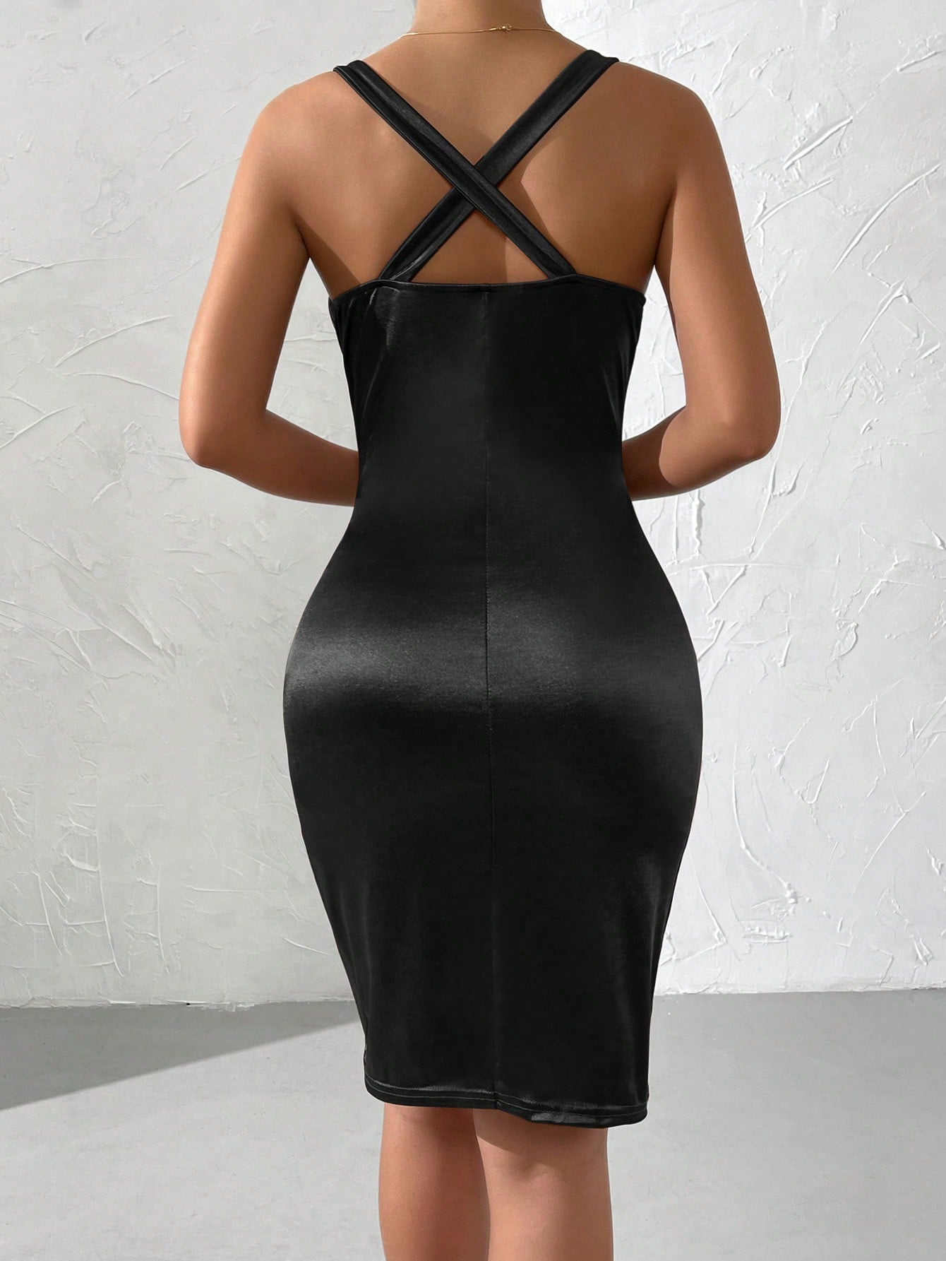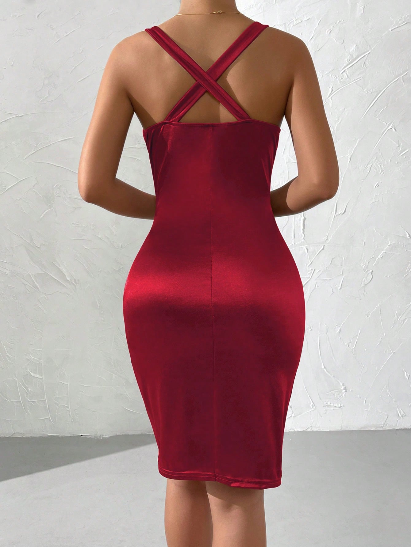 Ravishing Ruched Mini Dress with Plunging Neckline