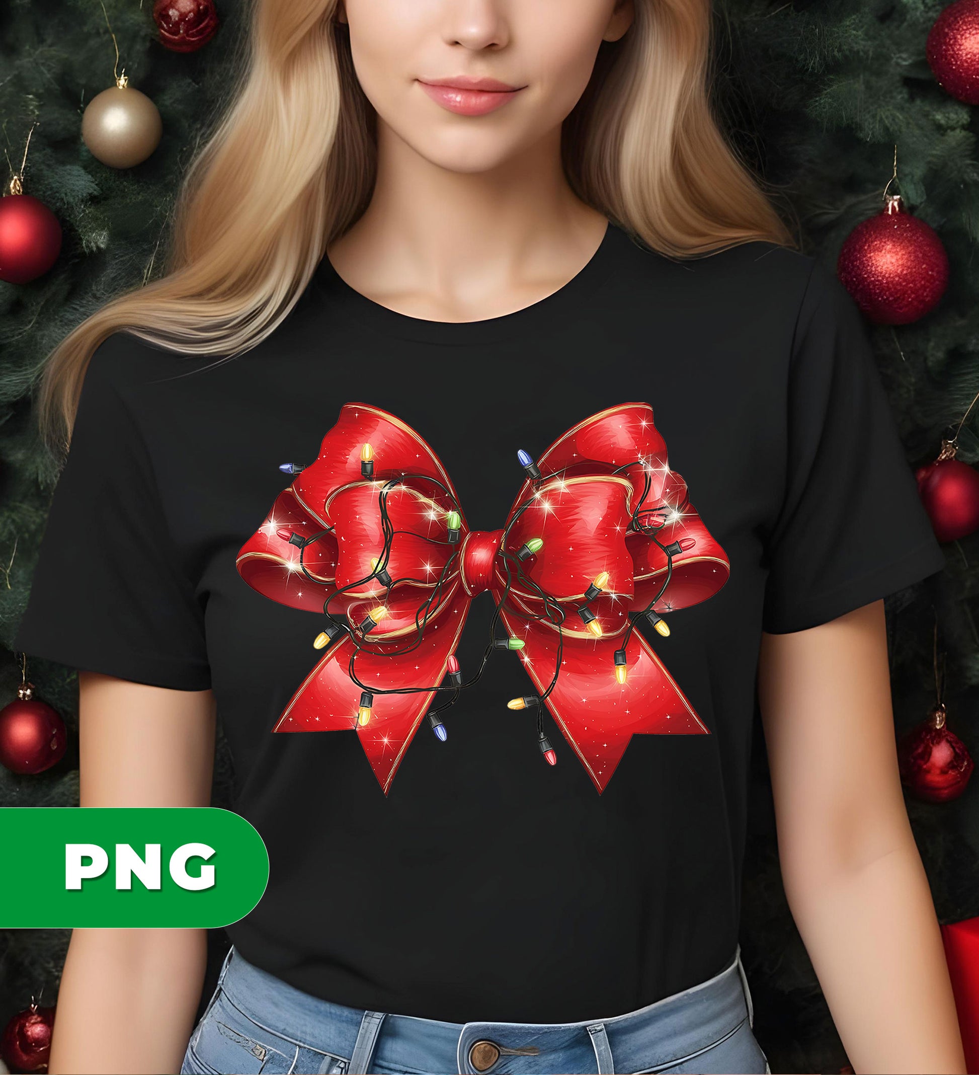 Red Bow, Christmas Light, Love Xmas, Bling Christmas, Digital Files, Png Sublimation
