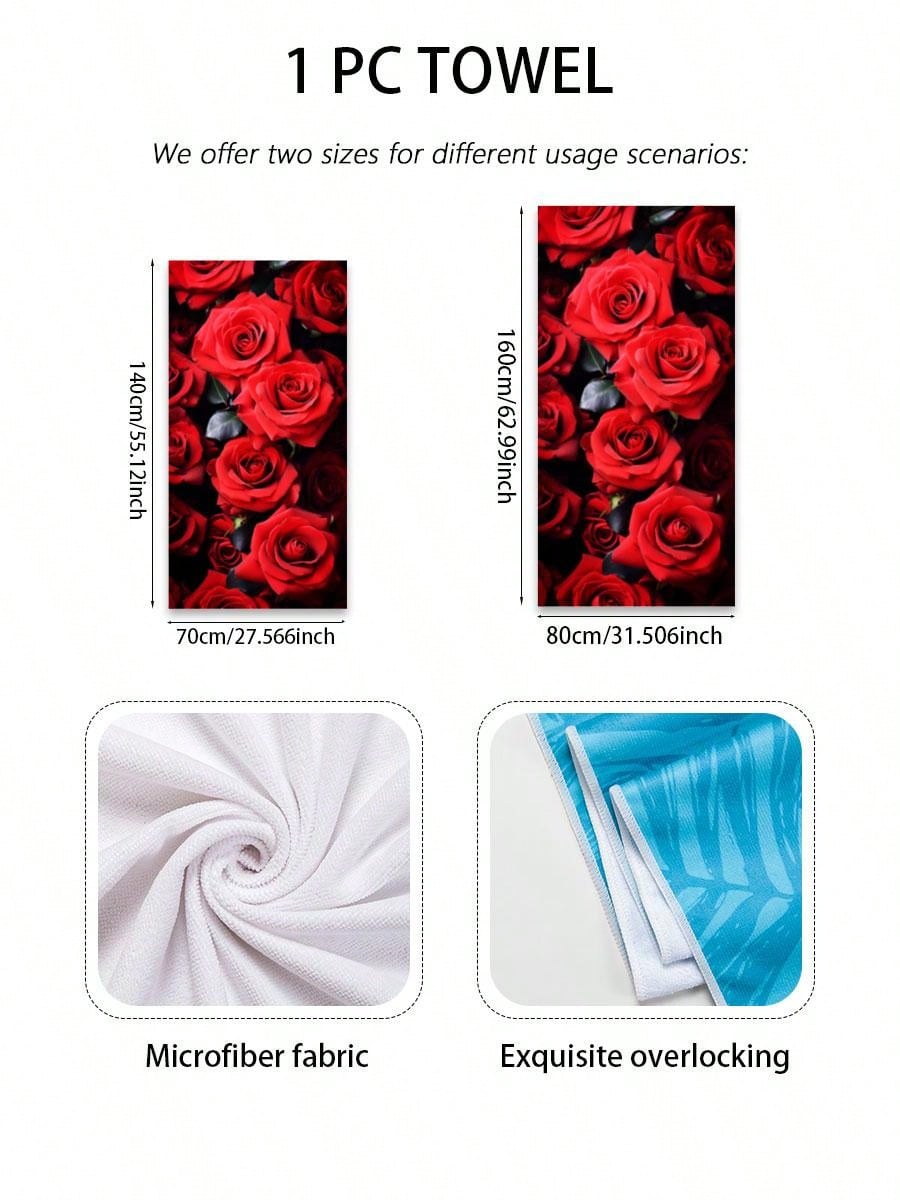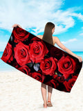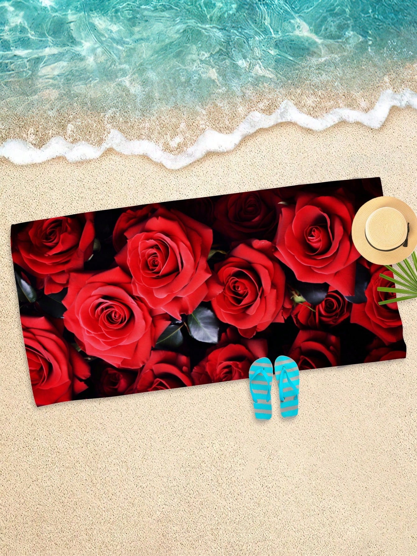 Red Rose Paradise: Ultra-Fine Fiber Absorbent Beach Towel for Swimming, Bathing, and Outdoor Travel