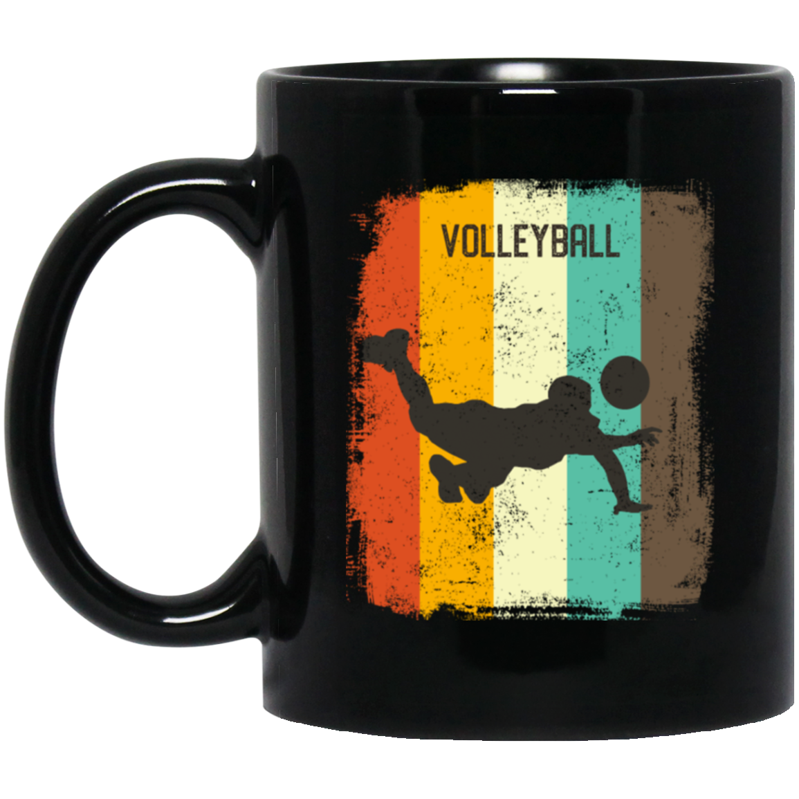 Retro 70s Vintage Volleyball Player Mens Gift Sporty Volleyball Lover Black Mug