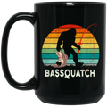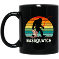 Retro Bass Quatch Angler Fish Vintage Gift For Friend Black Mug