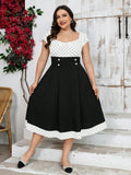 Retro Chic: Vintage Polka Dot Dress with Faux Pearl Accents and Puff Sleeves