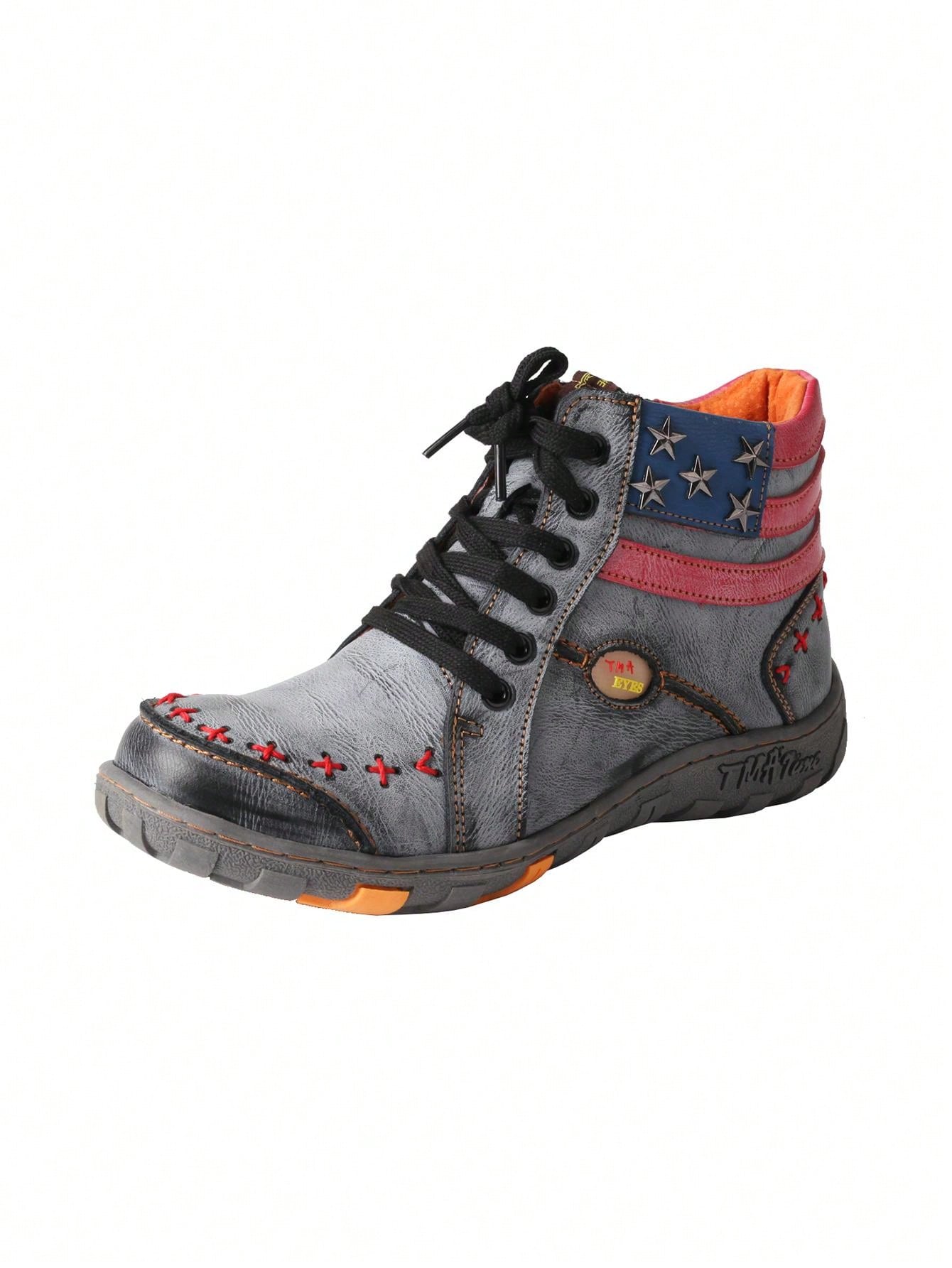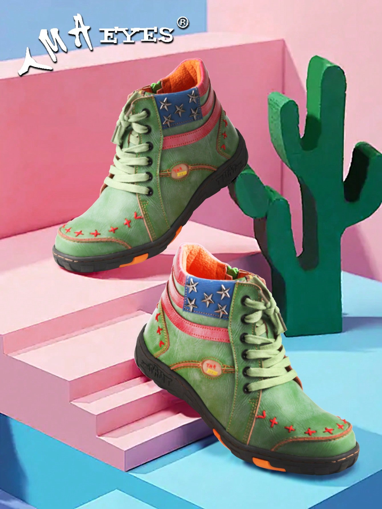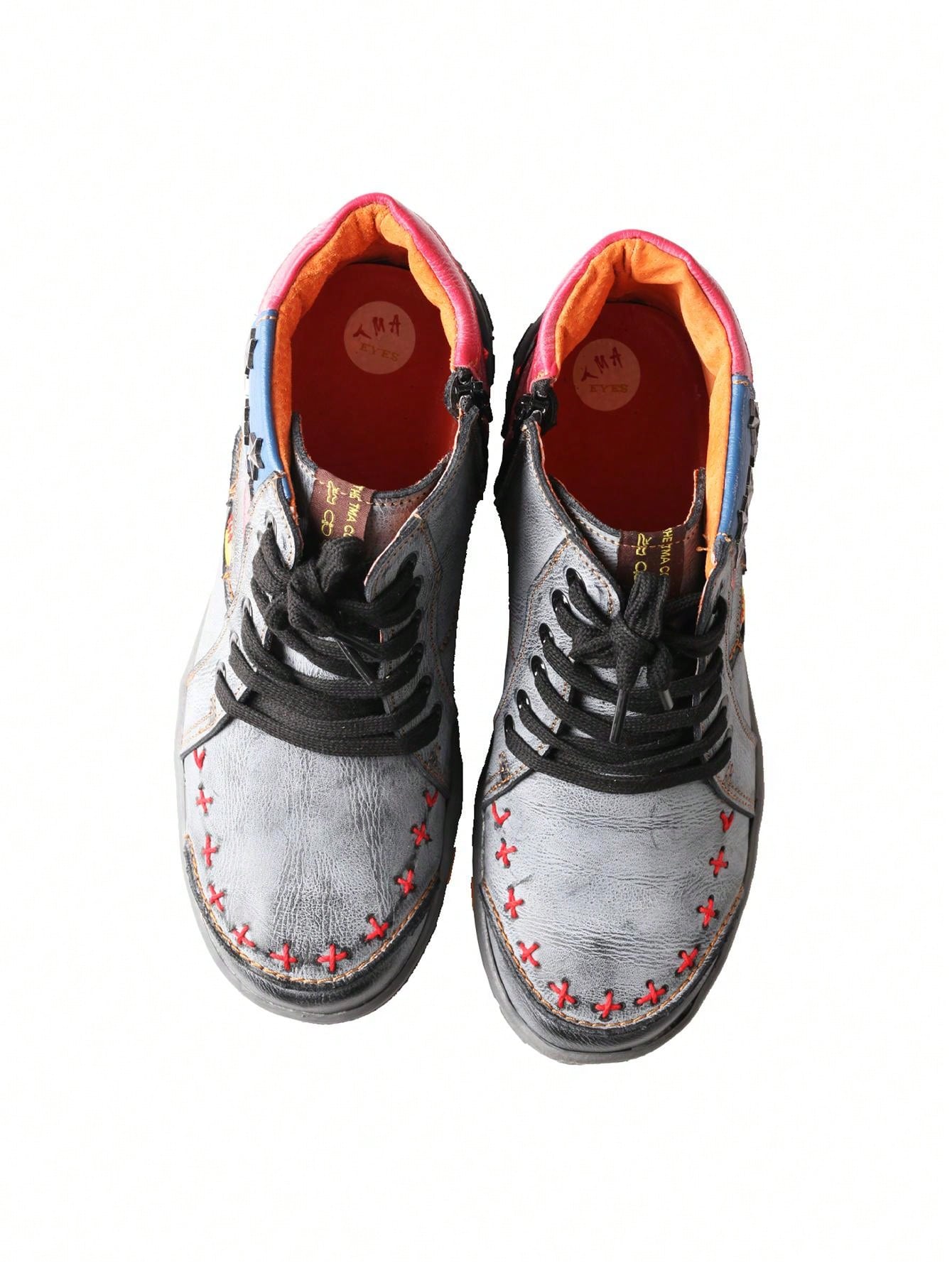 Retro Chic: Women's Handmade Flat Shoes with Stylish Stitching and Metal Stud Decoration