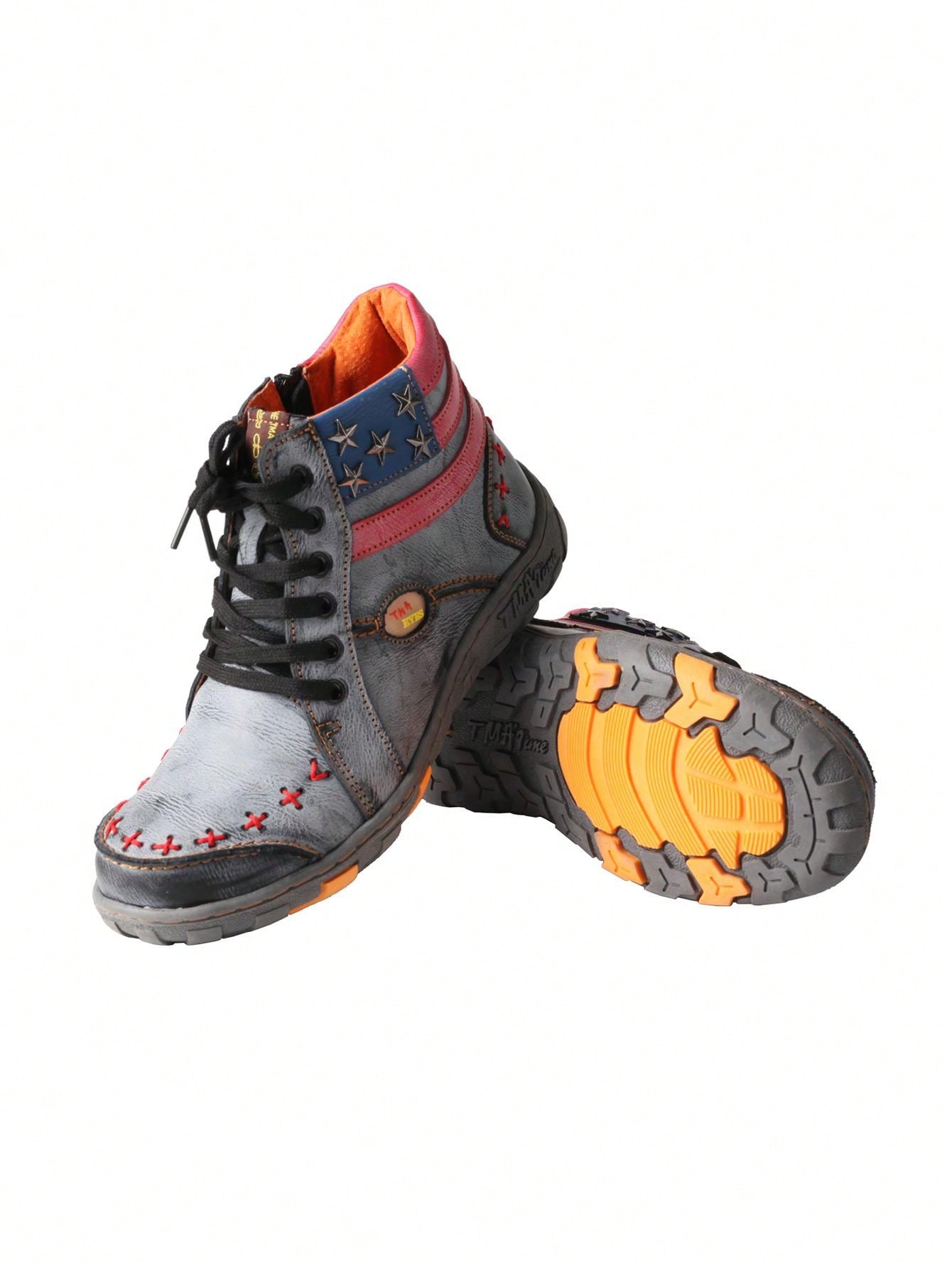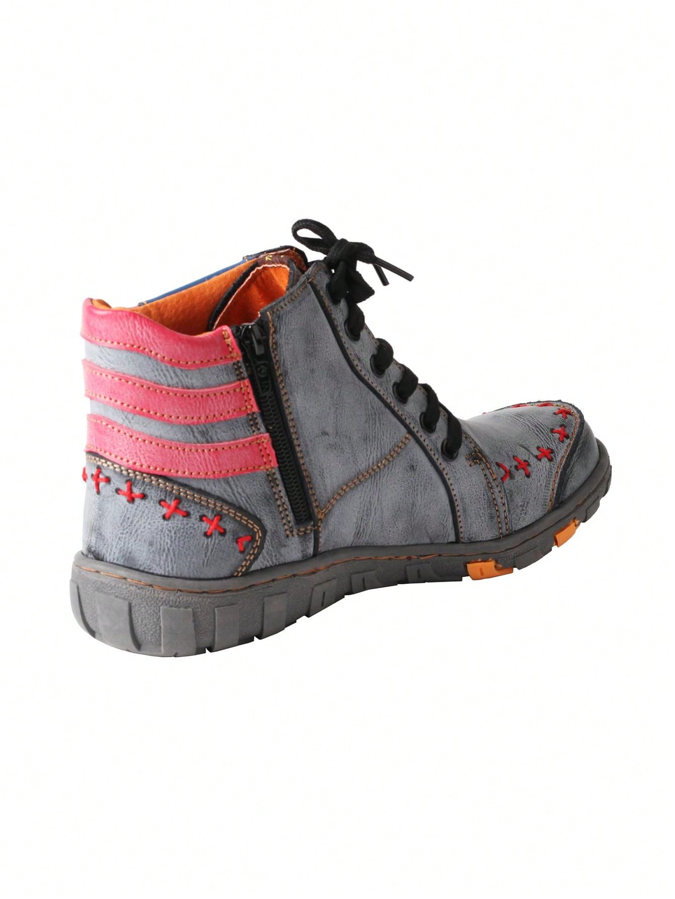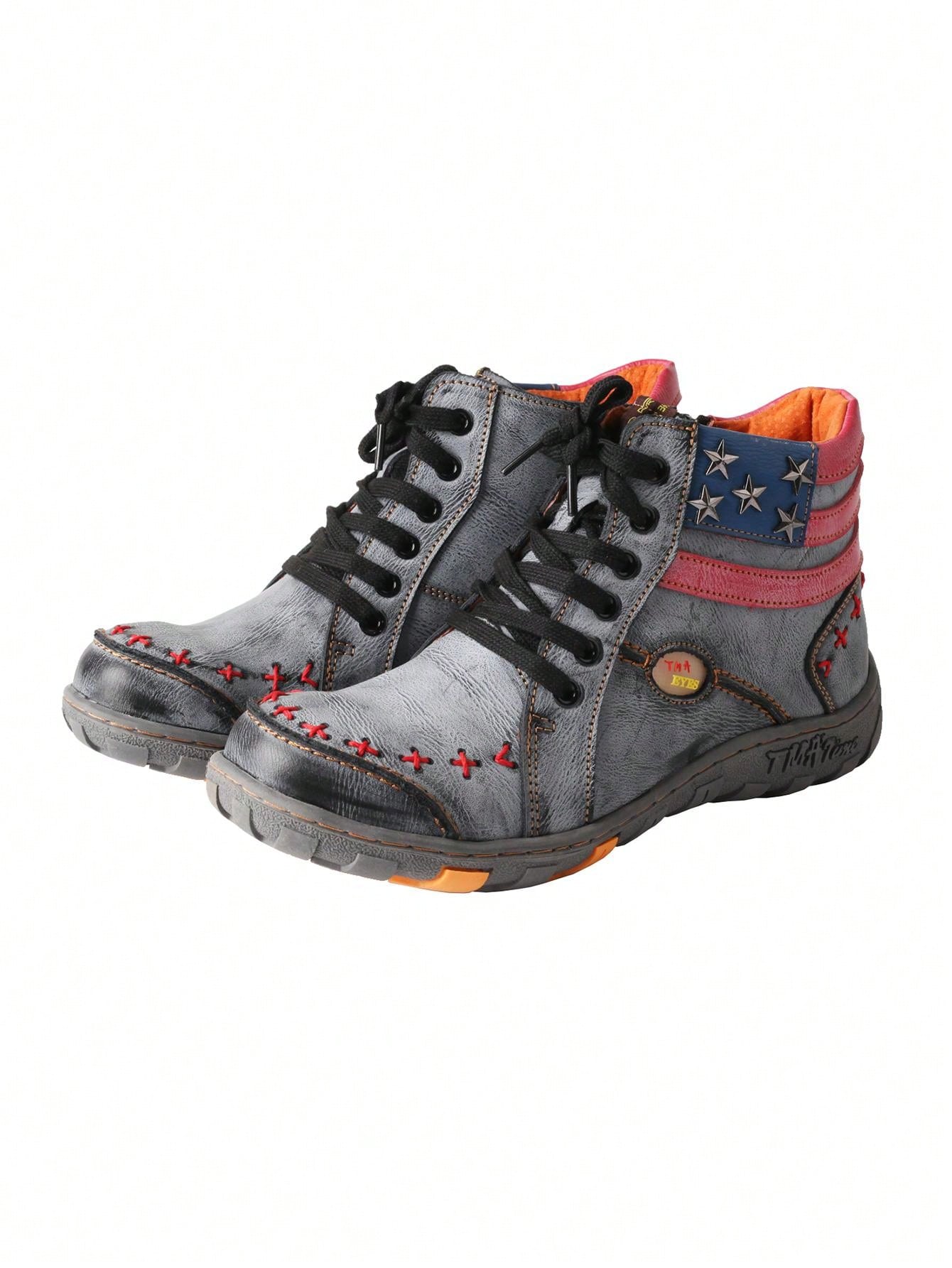 Retro Chic: Women's Handmade Flat Shoes with Stylish Stitching and Metal Stud Decoration