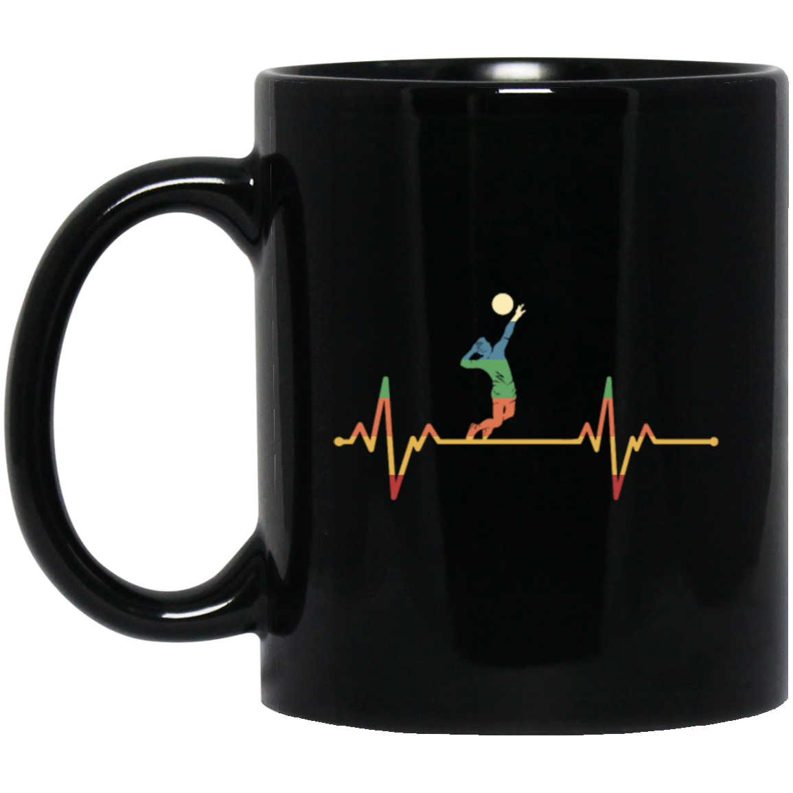 Retro Cool Heartbeat Volleyball Player Gift Black Mug