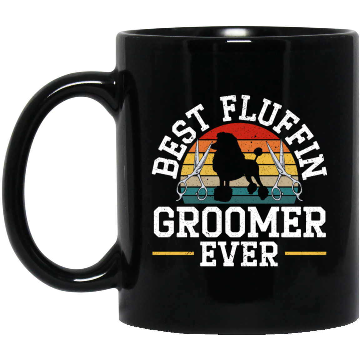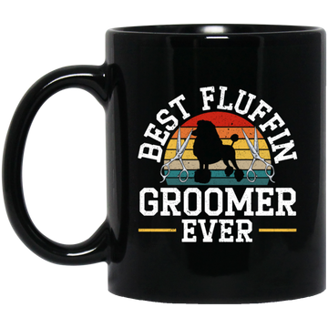 Retro Dog Love, Best Fluffin Groomer Ever, Flufifn Vintage Love Gift Black Mug