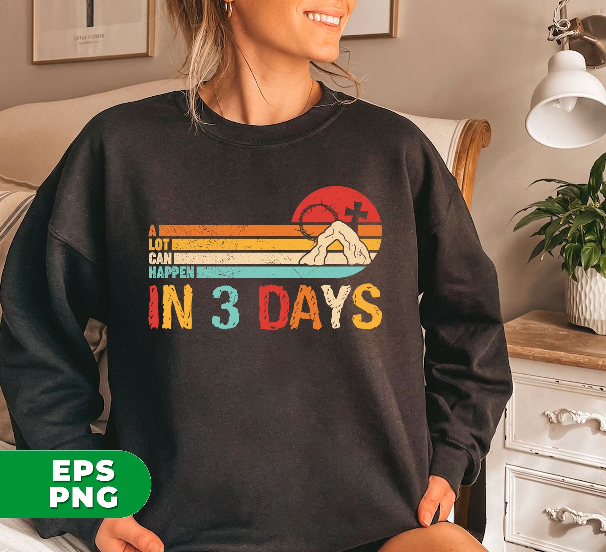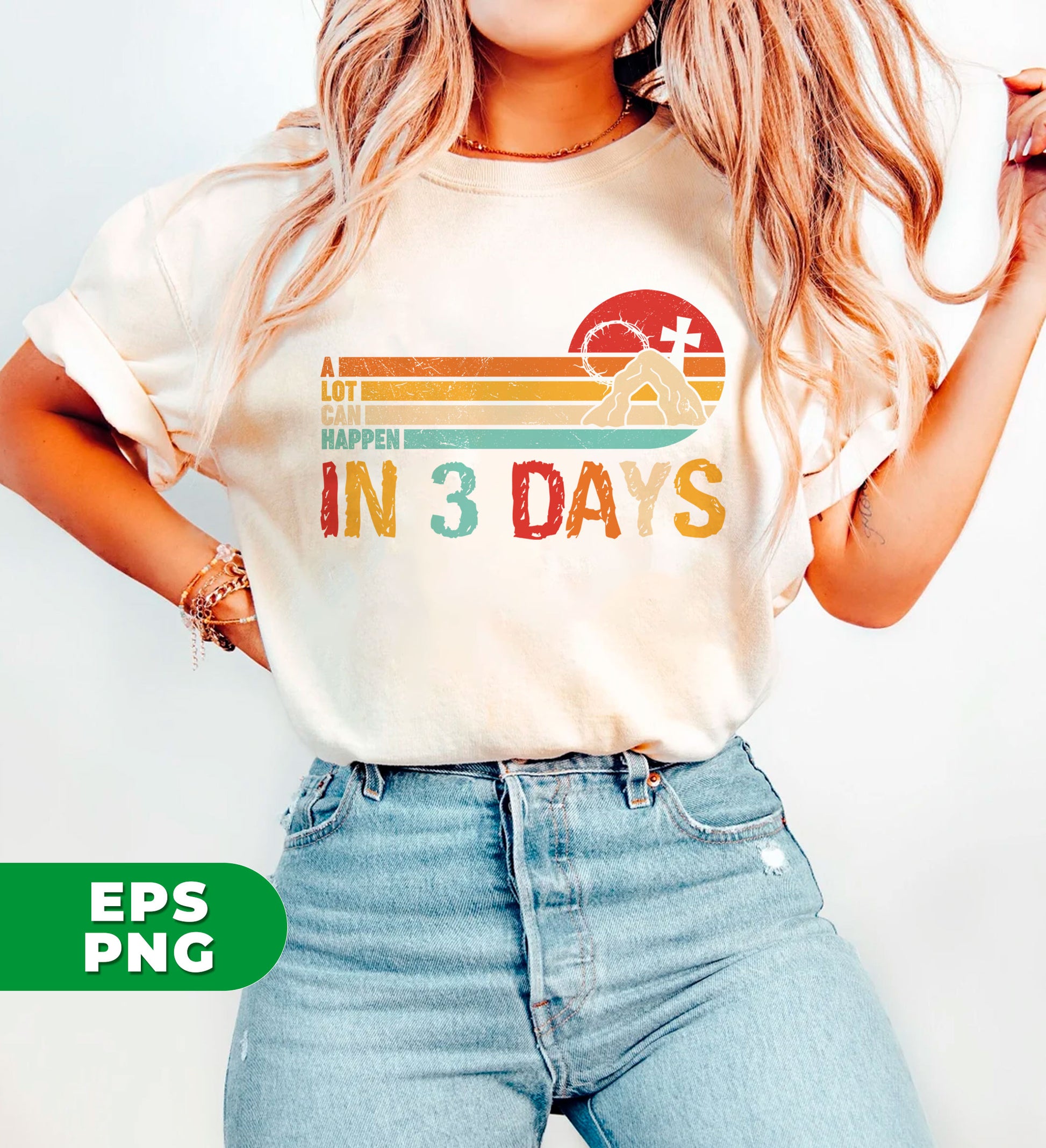 Take a nostalgic trip back to Easter with Retro Easter. Featuring the powerful message "A Lot Can Happen In 3 Days", these digital files in PNG format are perfect for sublimation. Relive and share the timeless story in a modern way.
