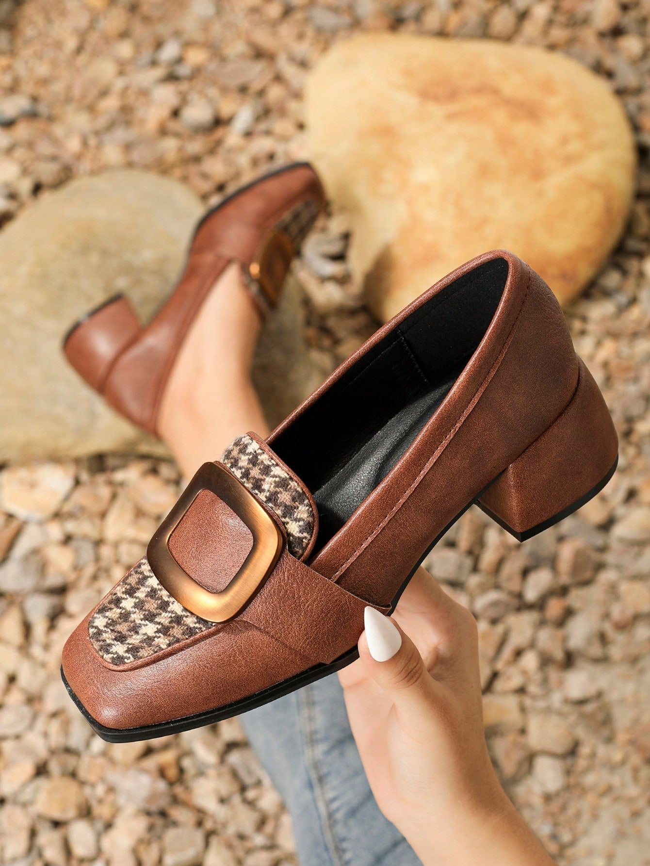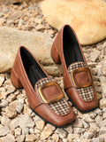Retro Elegance: Vintage Square Toe High-Heeled Loafers for Chic Style