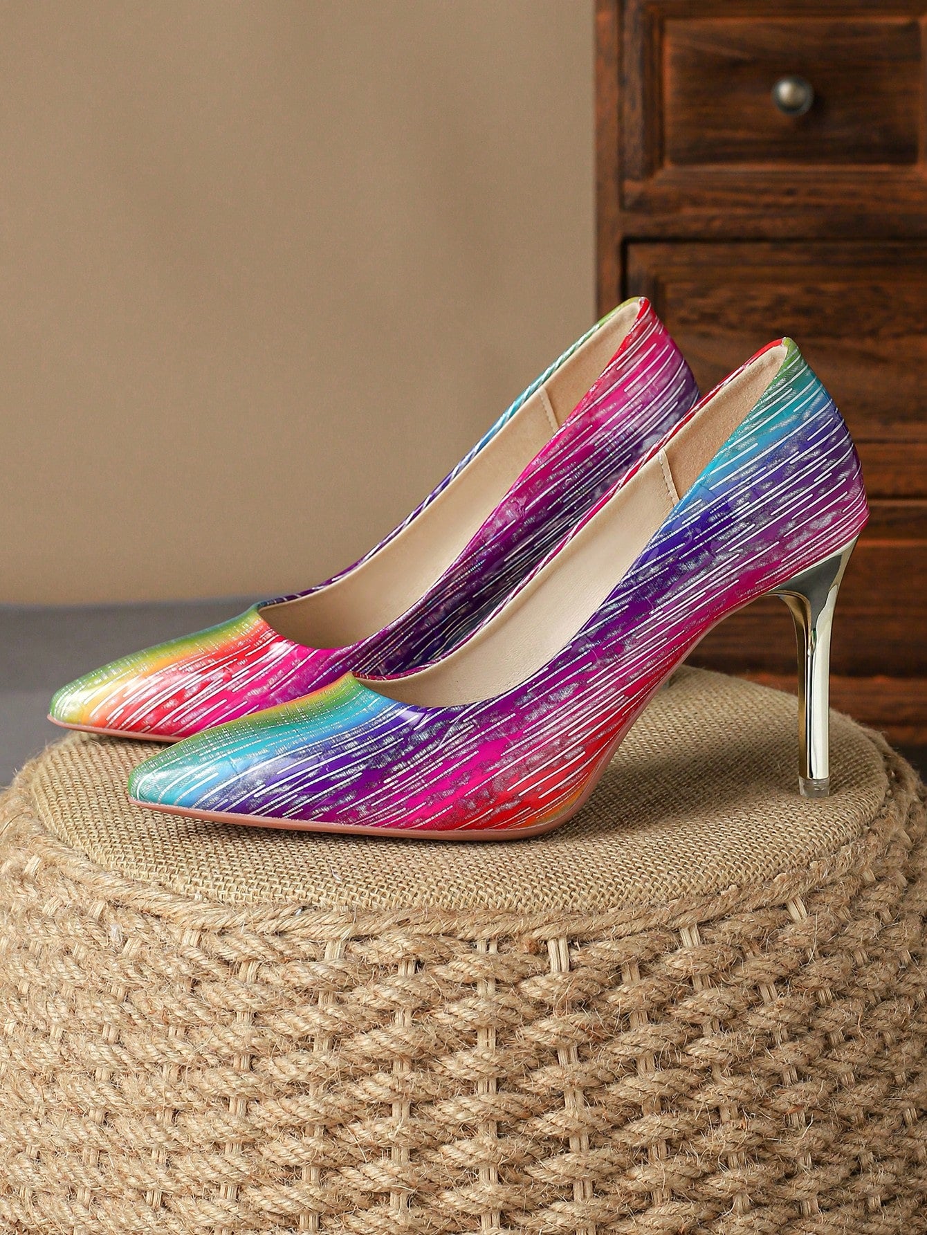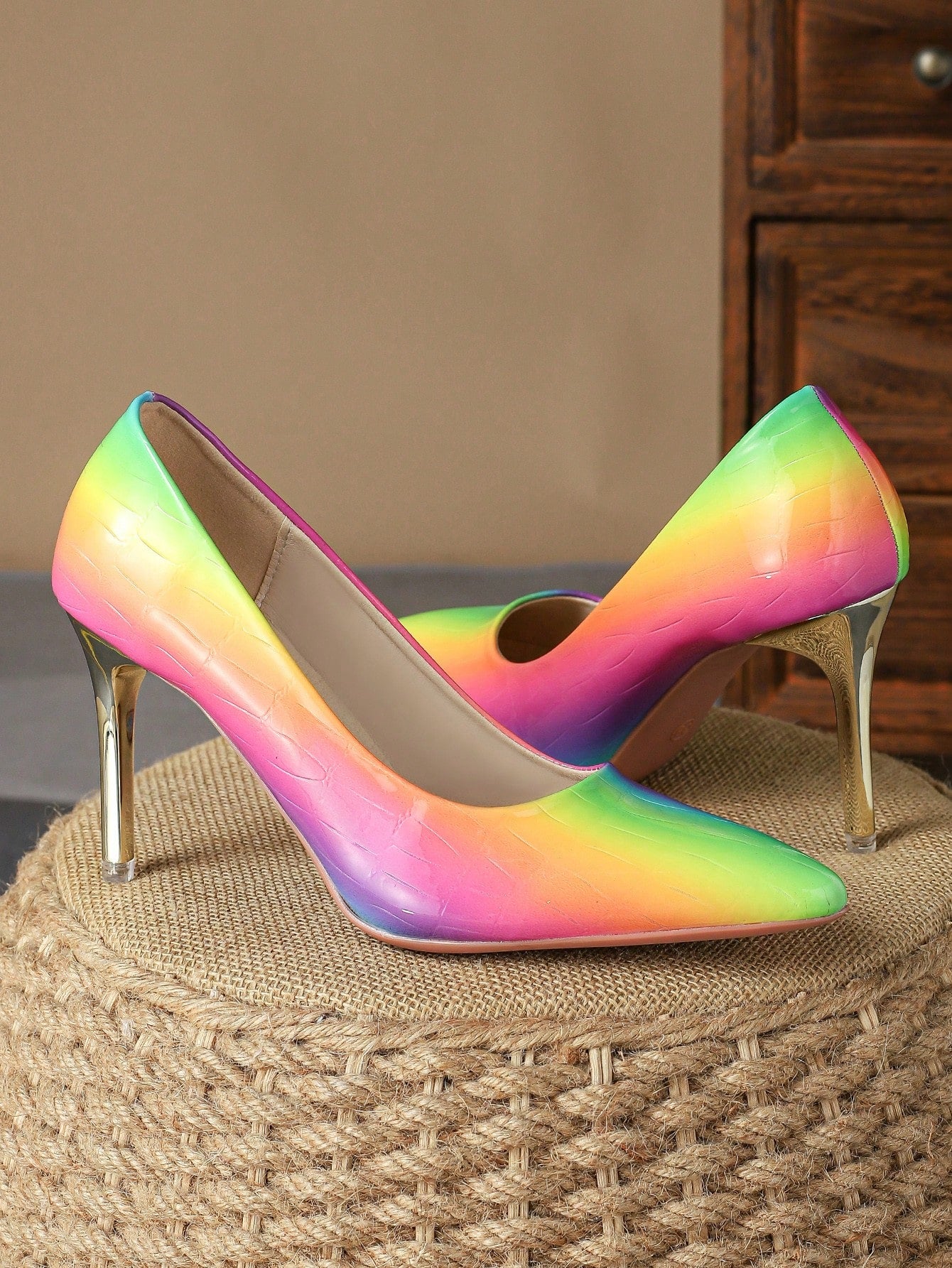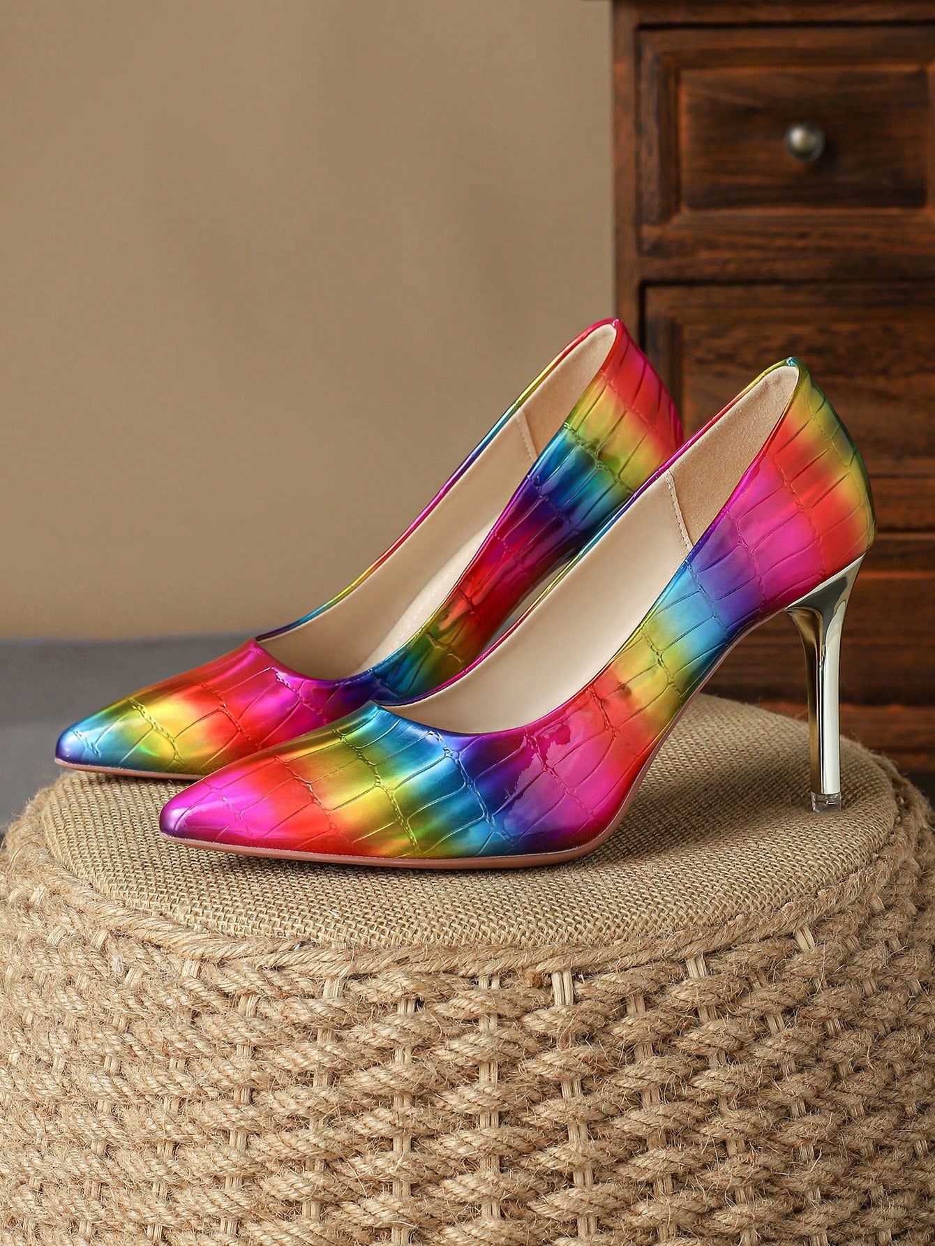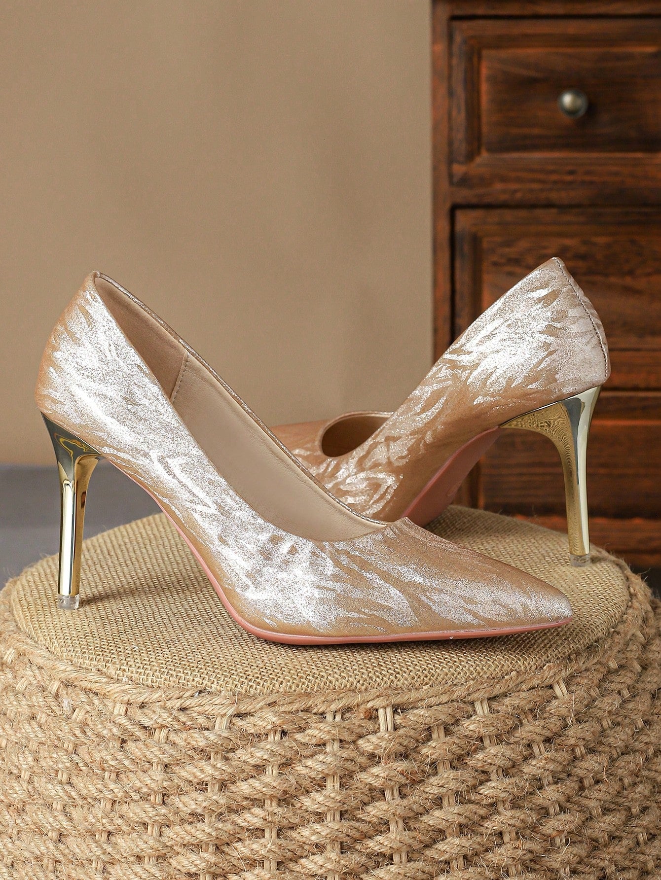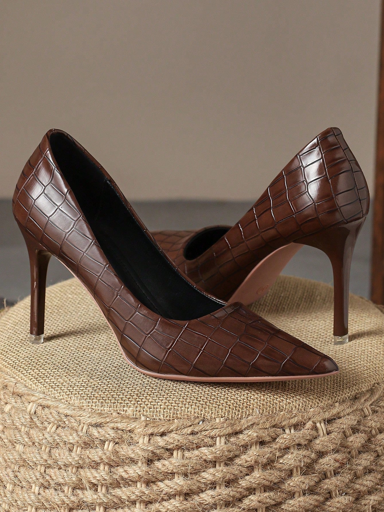 Introducing Retro Elegance: Women's Brown Pointed Toe High Heels Pumps, the perfect blend of comfort and style. These single shoes feature a pointed toe for a classic look, and a high heel for added sophistication. Made with quality materials, they are both comfortable and stylish.