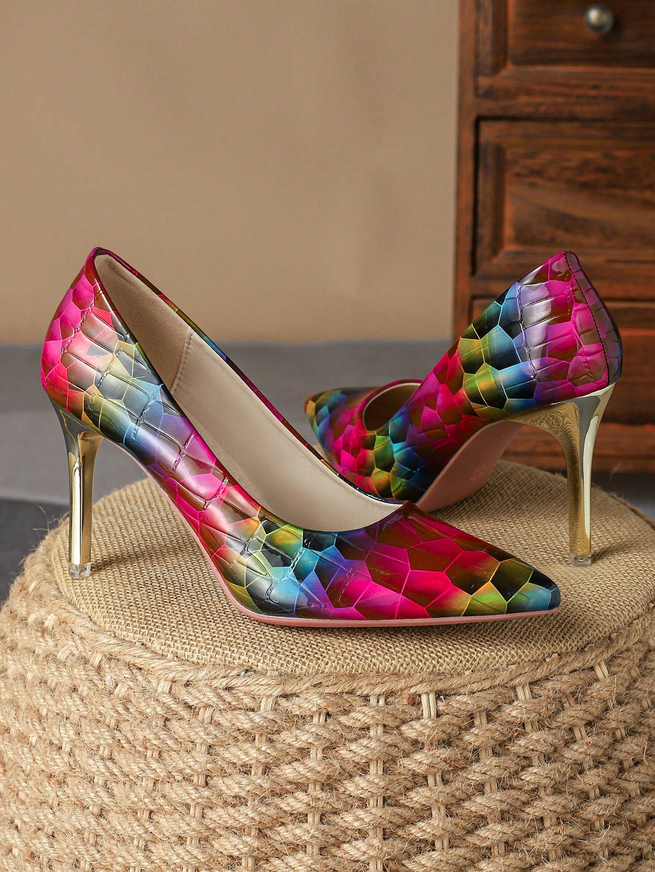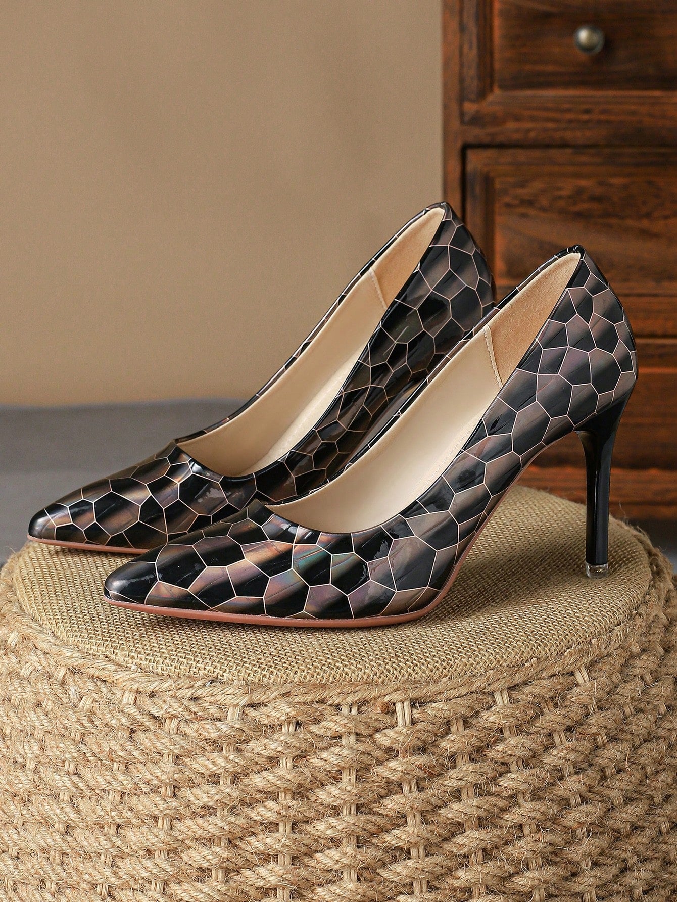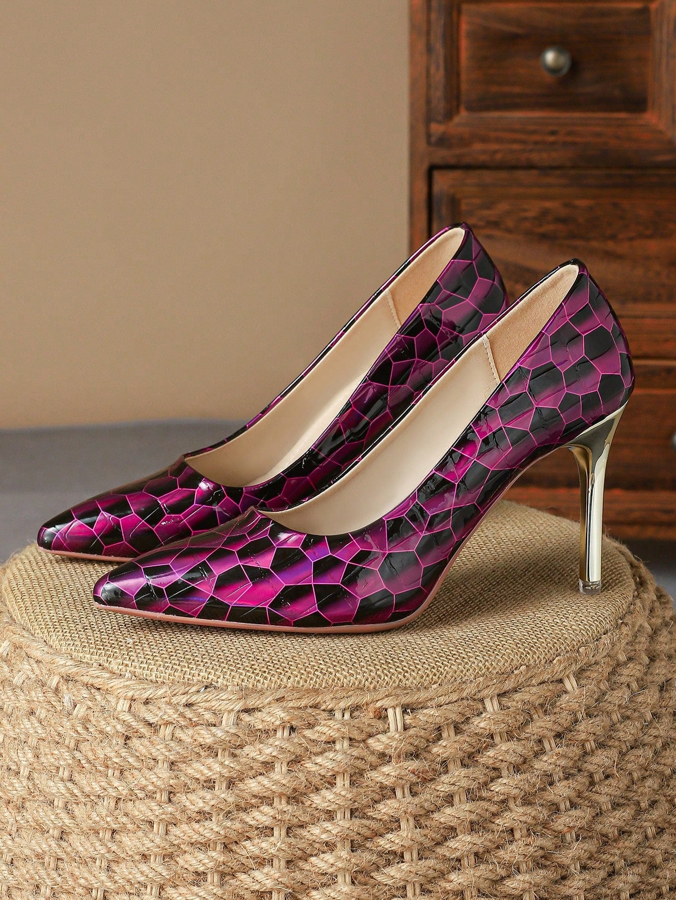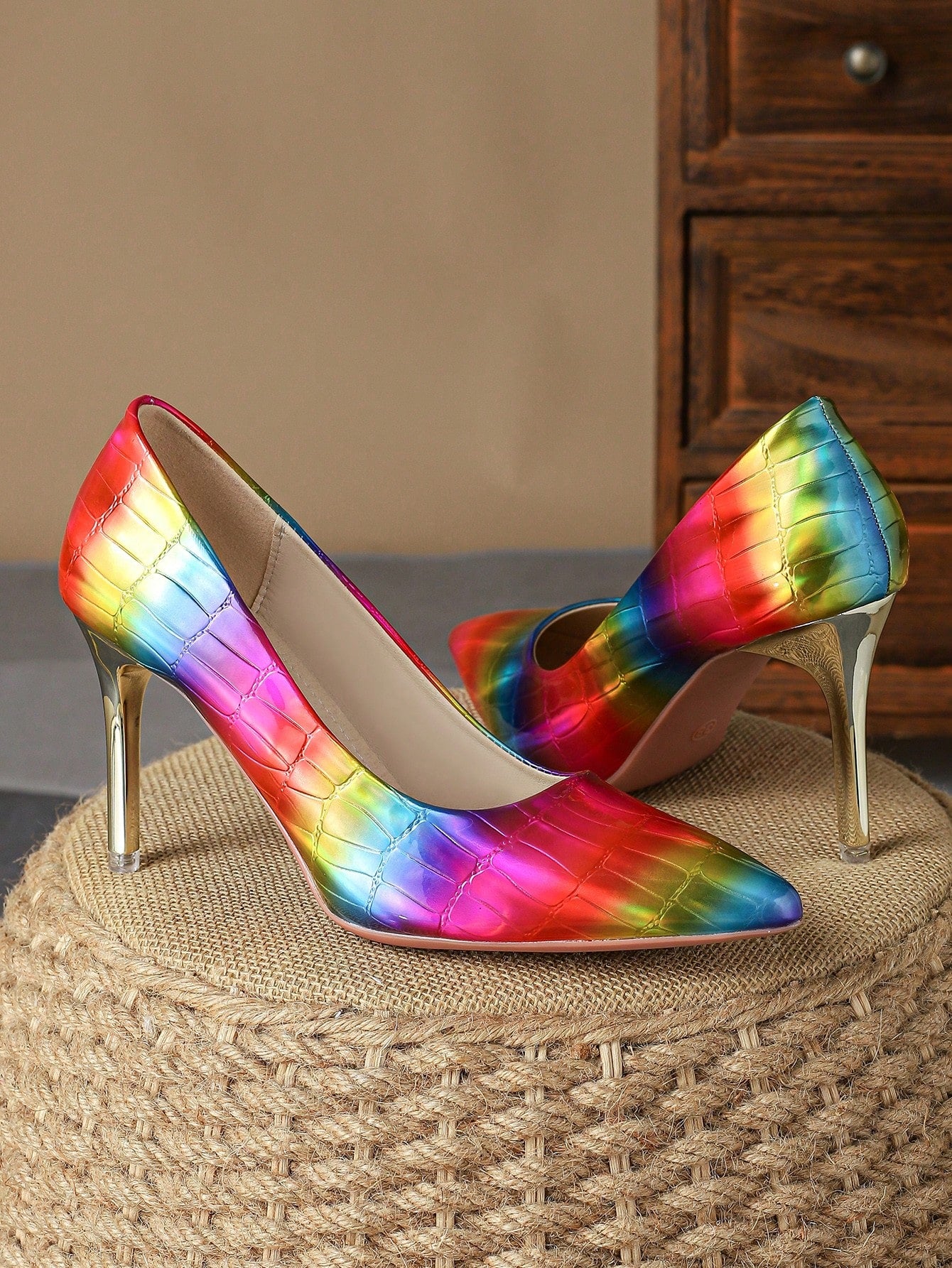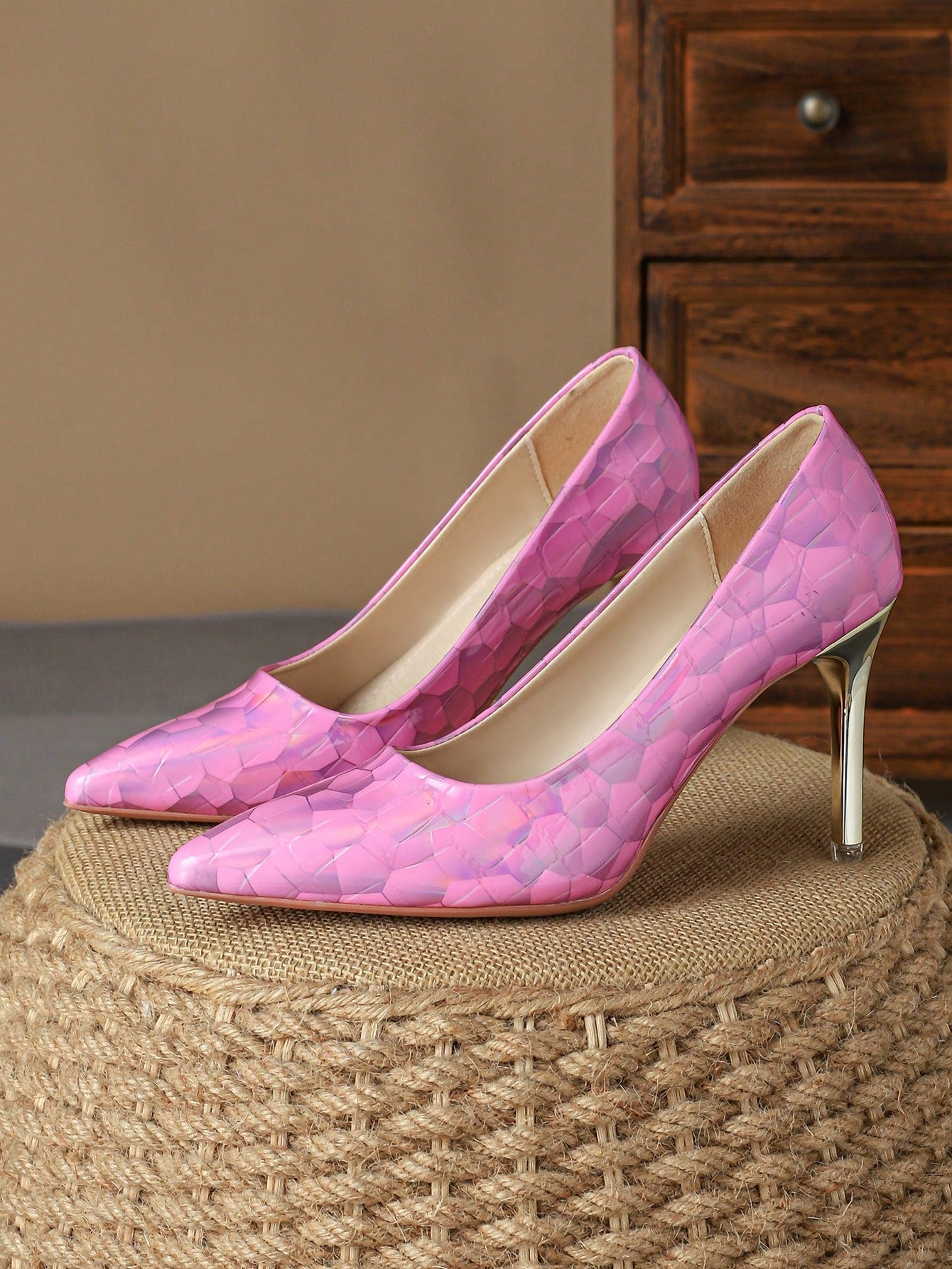 Introducing Retro Elegance: Women's Brown Pointed Toe High Heels Pumps, the perfect blend of comfort and style. These single shoes feature a pointed toe for a classic look, and a high heel for added sophistication. Made with quality materials, they are both comfortable and stylish.