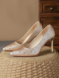 Retro Elegance: Women's Brown Pointed Toe High Heels Pumps - Comfortable and Stylish Single Shoes