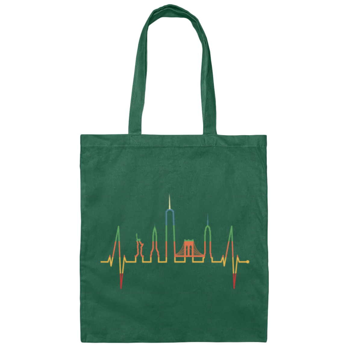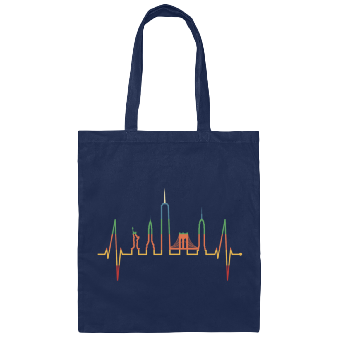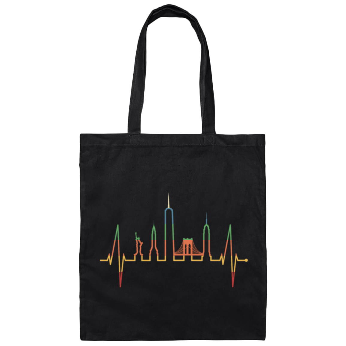 Retro New York Skyline Heartbeat Heart Statue Of Liberty Canvas Tote Bag