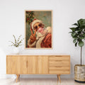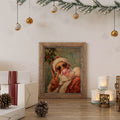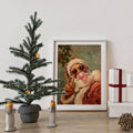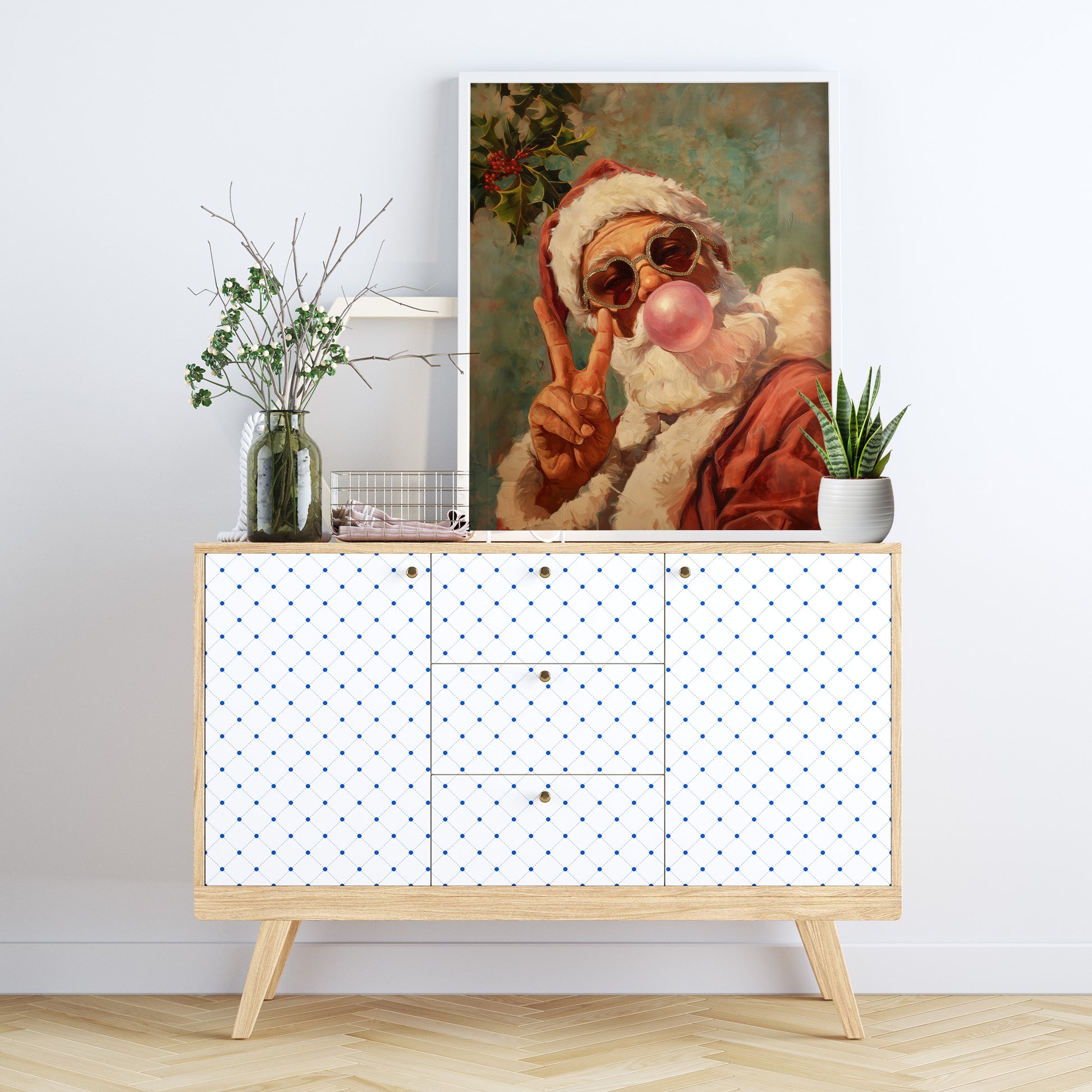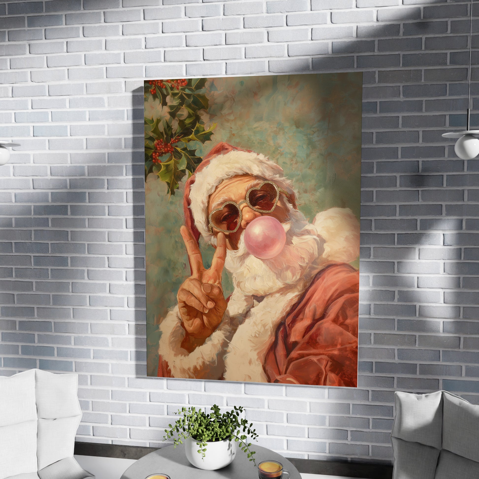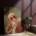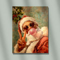 Retro Santa With Bubblegum And Heart Glasses, Cool Christmas Wall Art, Funky Holiday Decor