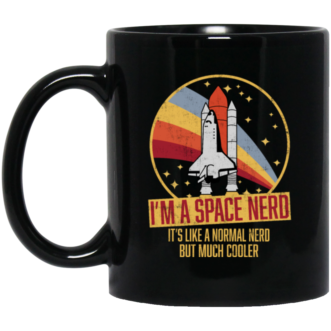 Retro Space I Am A Space Nerd, Its Like A Normal Nerd But Much Cooler Black Mug