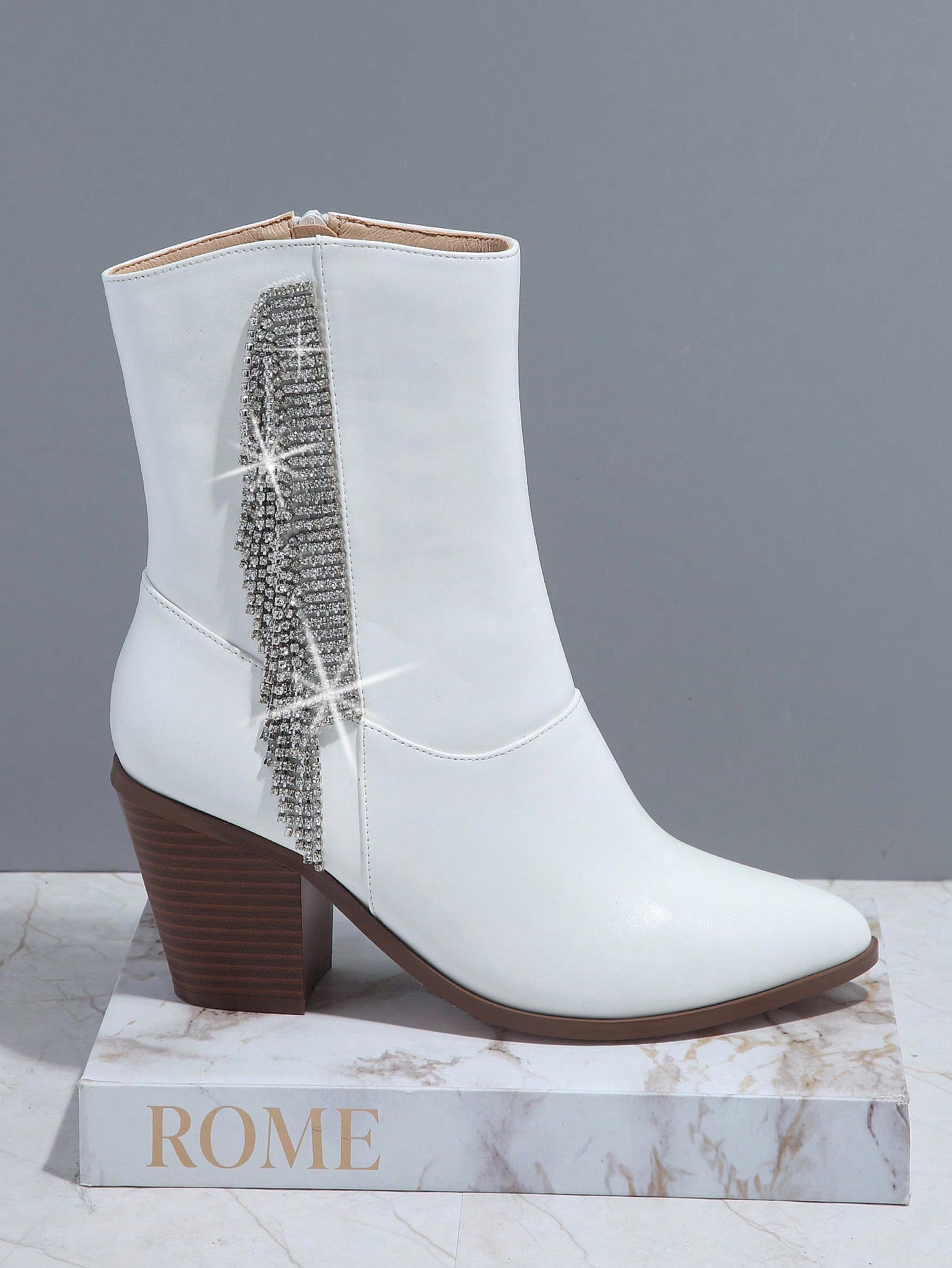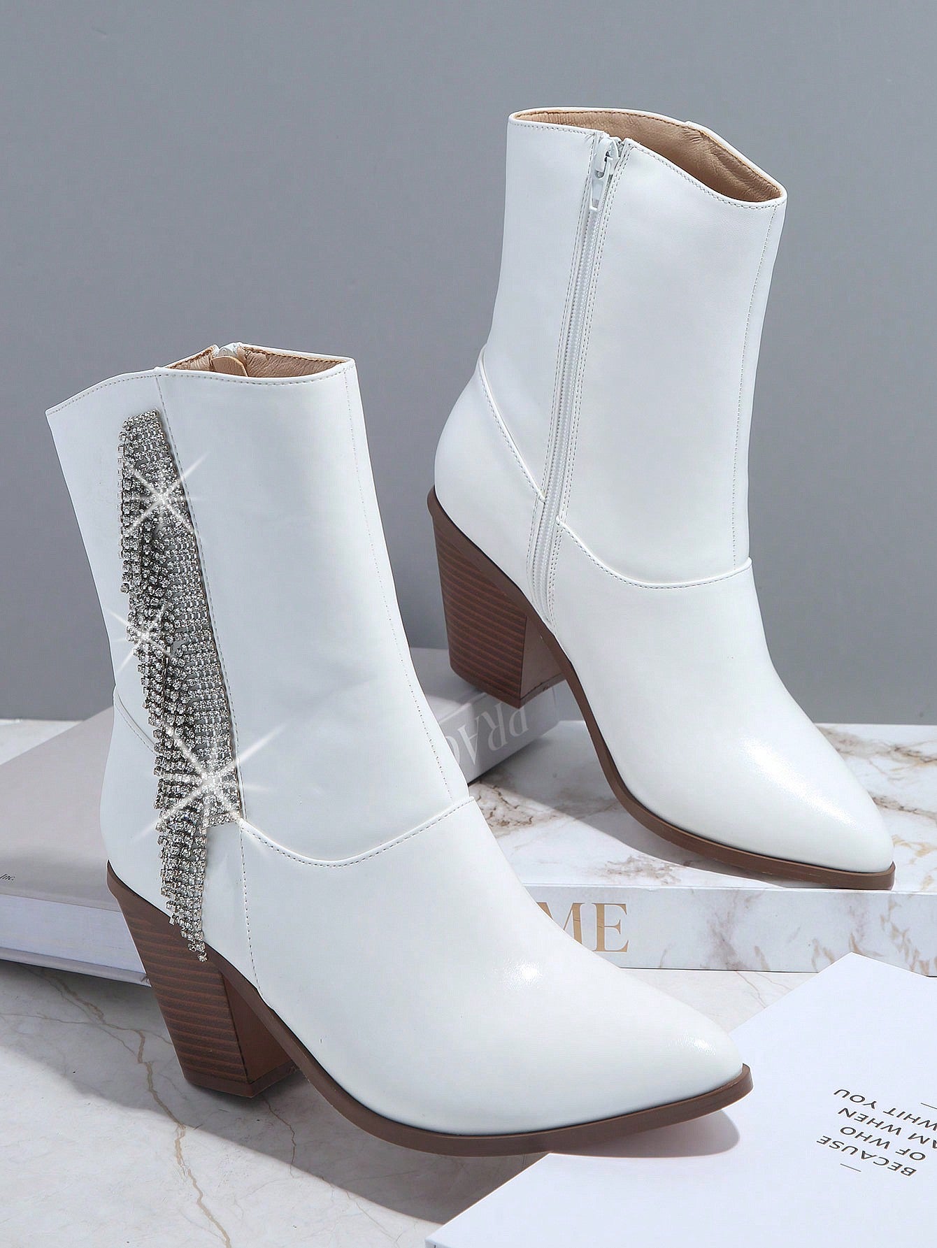 Rhinestone Glam: Side Zipper Chunky Heeled Boots