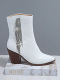 Elevate your style with Rhinestone Glam's Side Zipper Chunky Heeled Boots. These boots are designed with sparkling rhinestones and a side zipper for easy wear. The chunky heel adds height and stability, perfect for a night out. Upgrade your wardrobe with these glamorous boots.