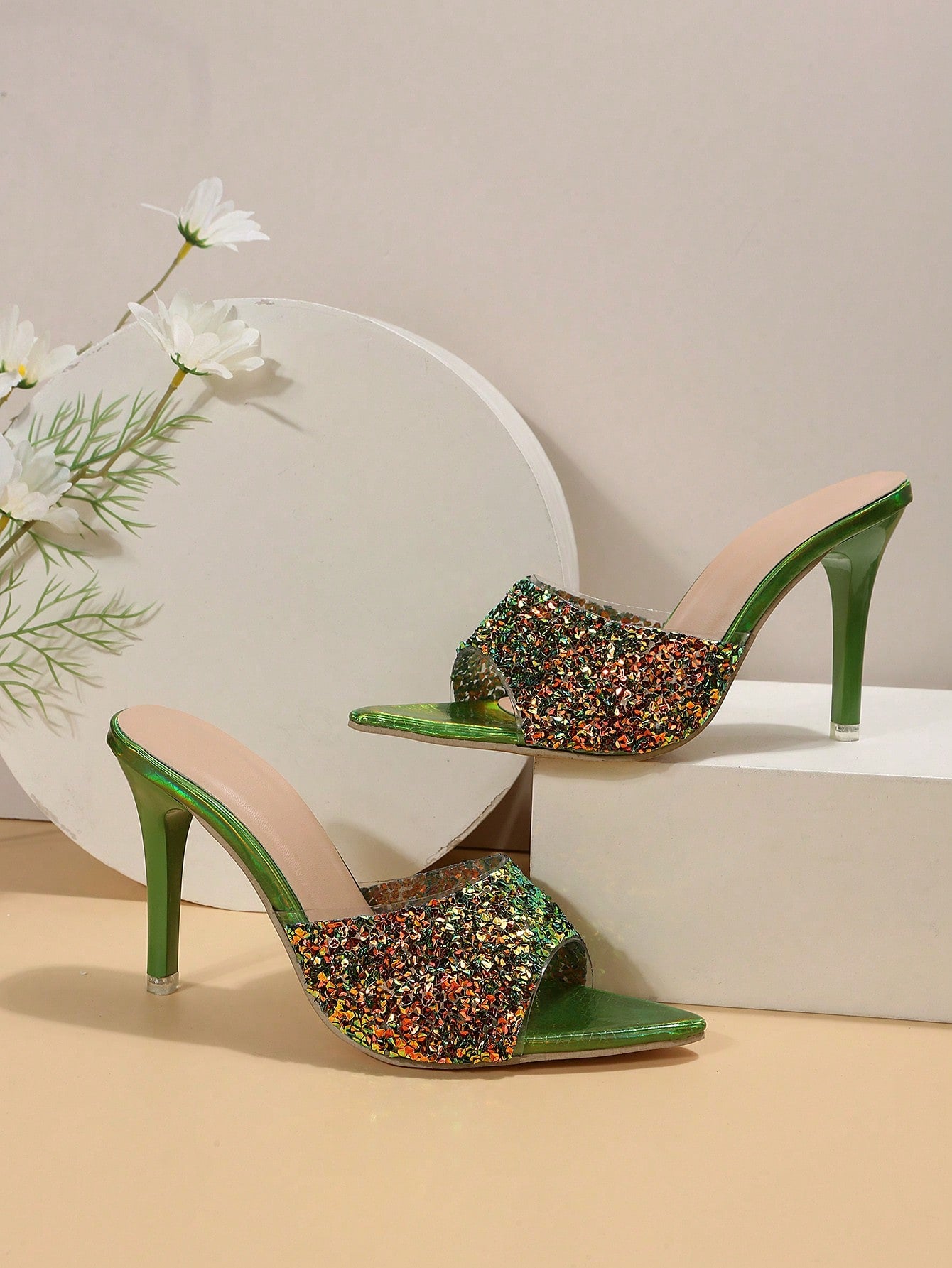 Rhinestone Glam: Stiletto Heeled Mule Sandals for a Stylish Summer