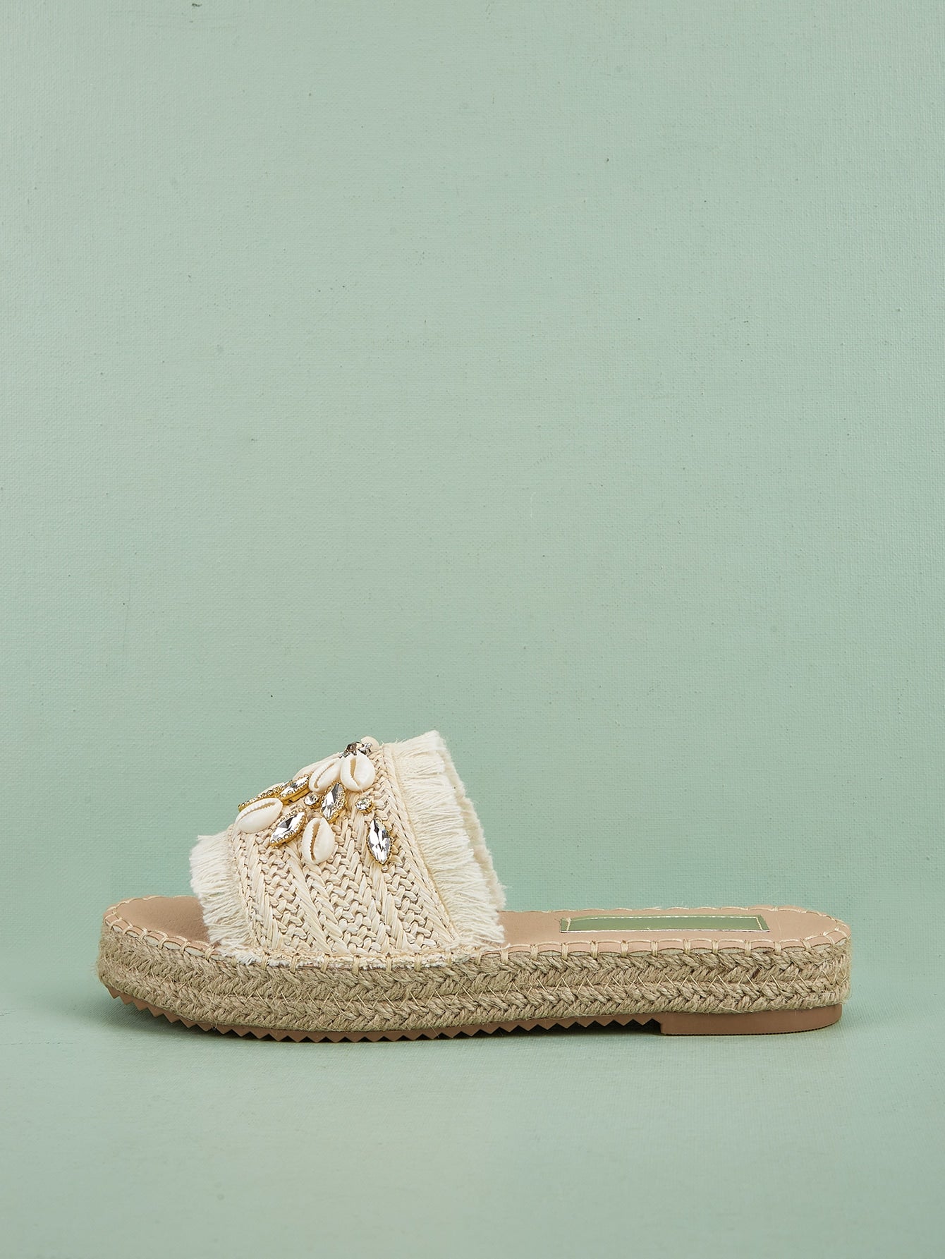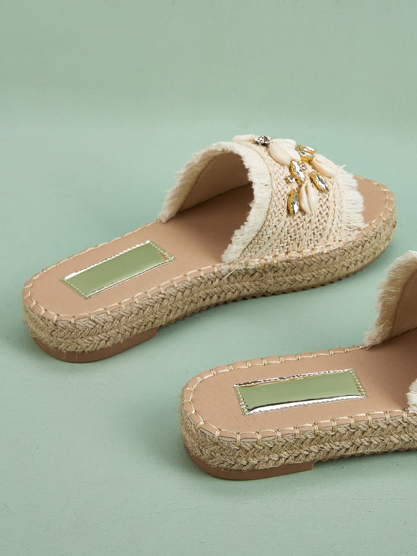 Rhinestone Shell Decor Espadrille Sandals: The Ultimate Vacation Beige Outdoor Straw Flats