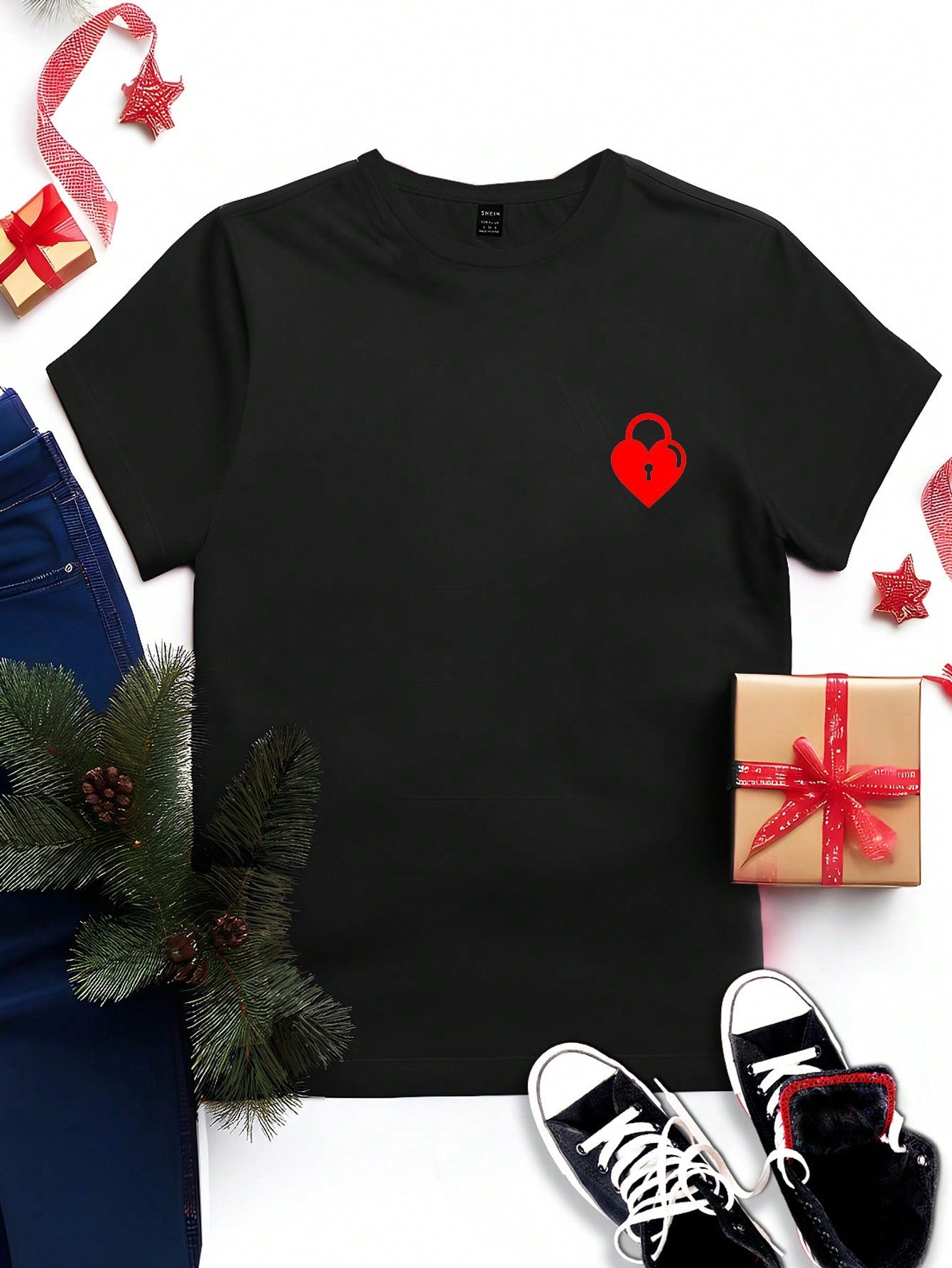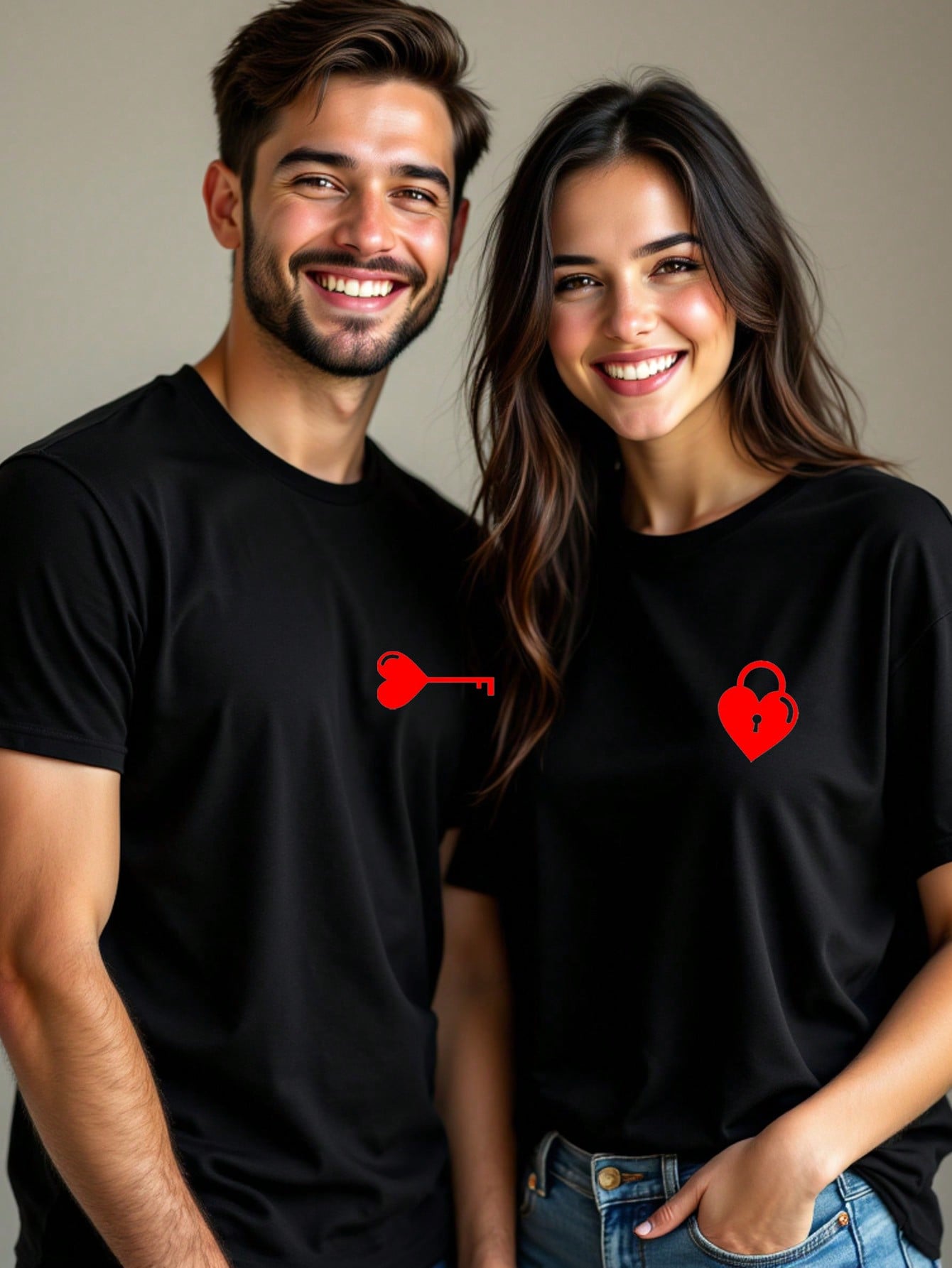Romantic Heart Design Couple T-Shirt - Perfect for Valentine’s Day Celebrations!