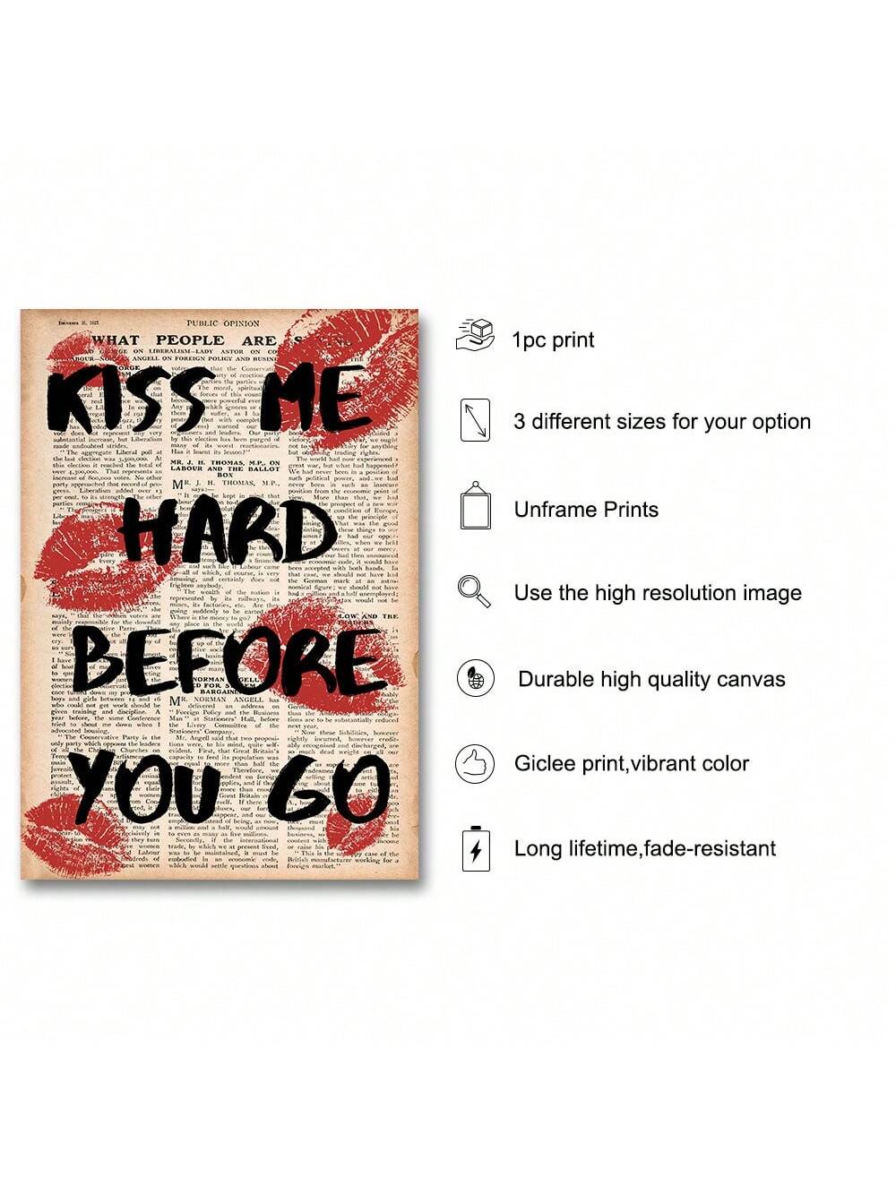 Add some romance and nostalgia to your decor with our Romantic Retro Lips: Vintage Newspaper Wall Poster. This stunning piece features vintage newspaper print and a bold, vintage-inspired lips graphic. Made with high-quality materials, this wall poster adds a touch of charm to any space.