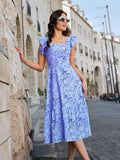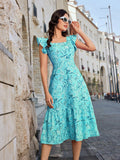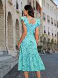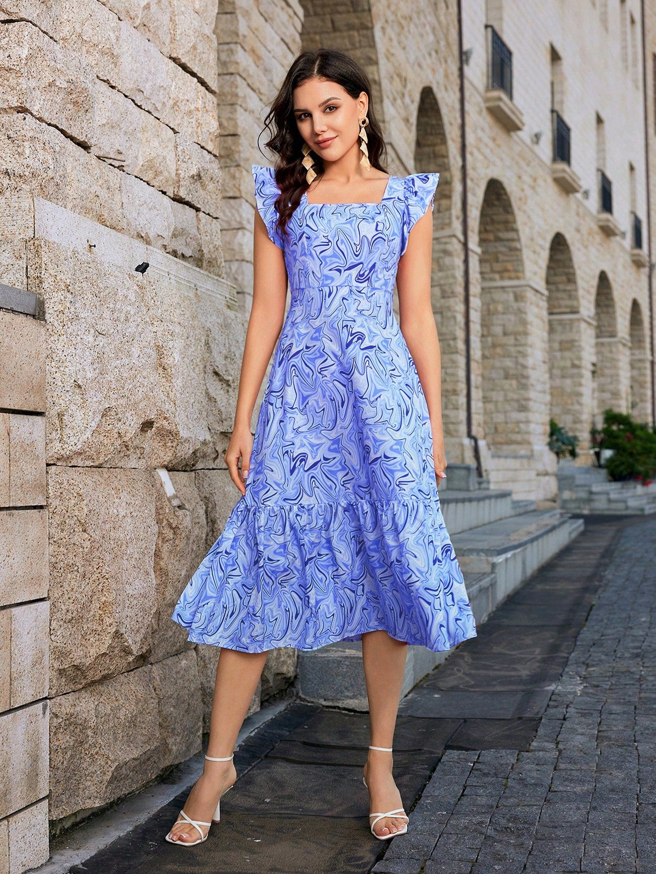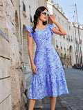 Ruffled in Paradise: Random Print Sleeveless Vacation Dress