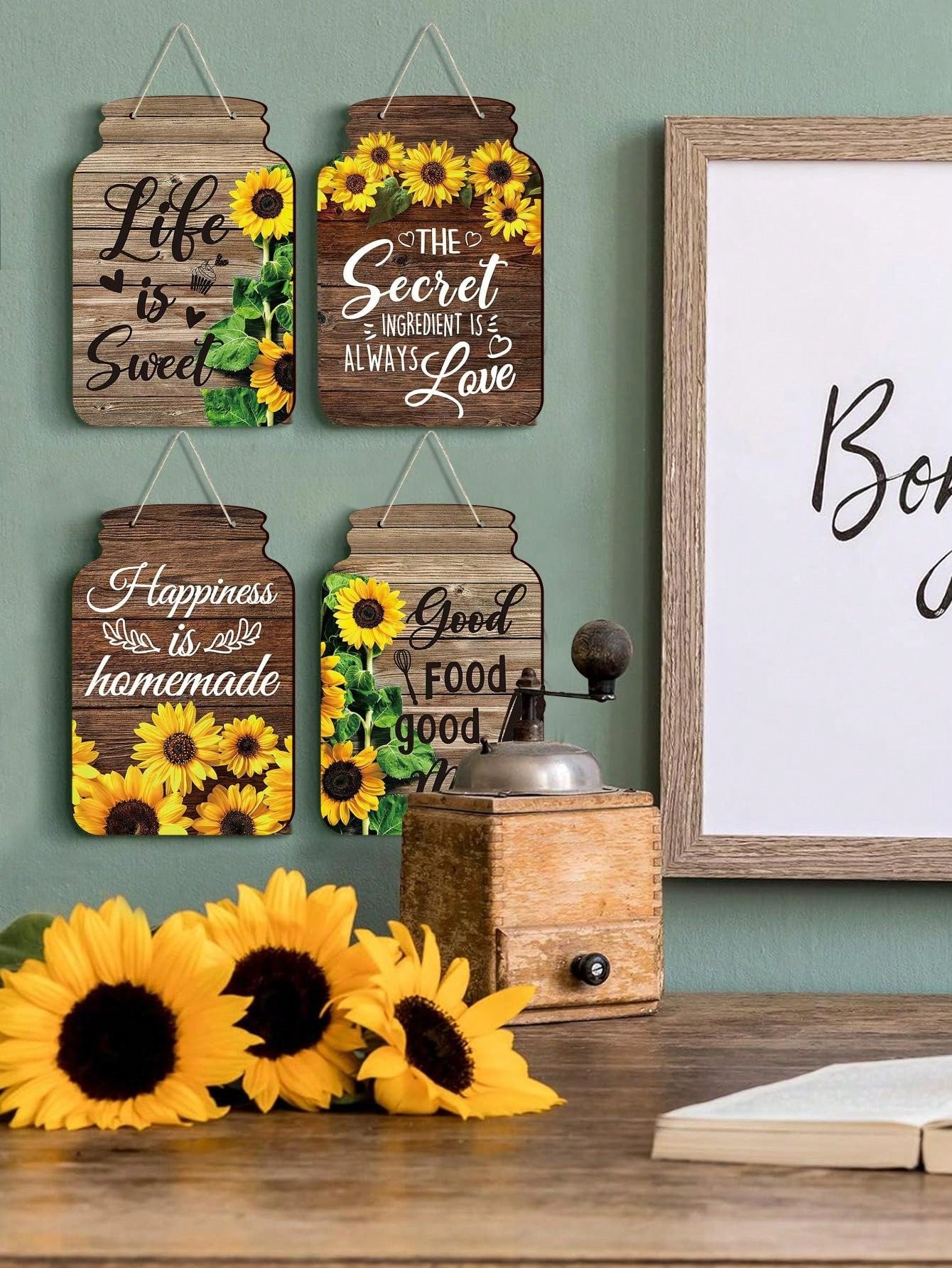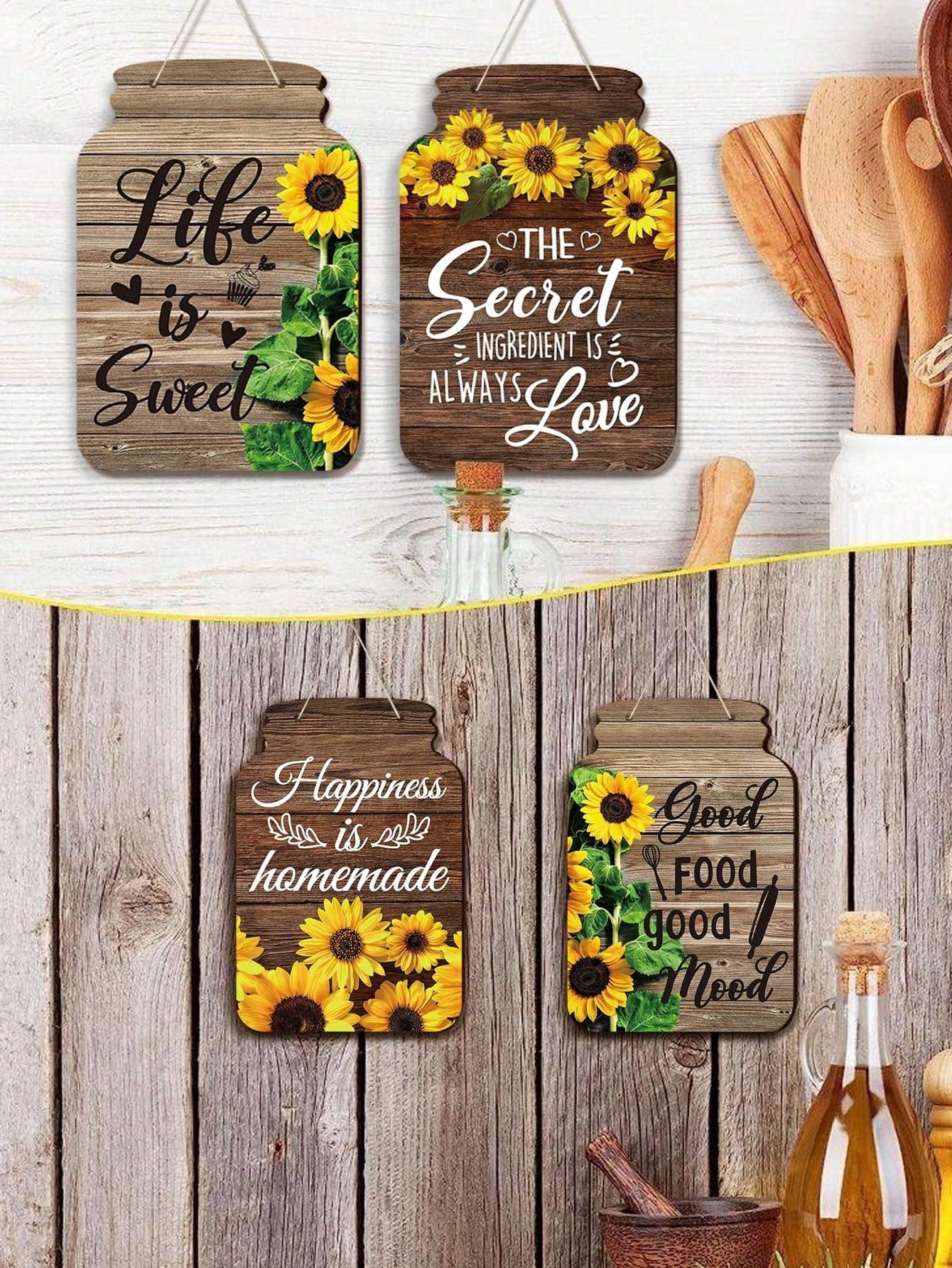 Rustic Charm: 4-Piece Mason Jar Kitchen Wall Decor Set for Farmhouse Homes