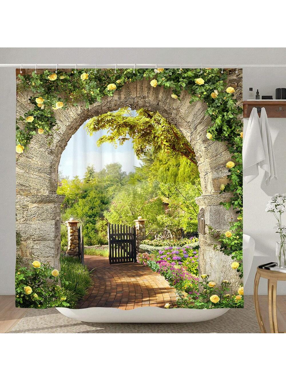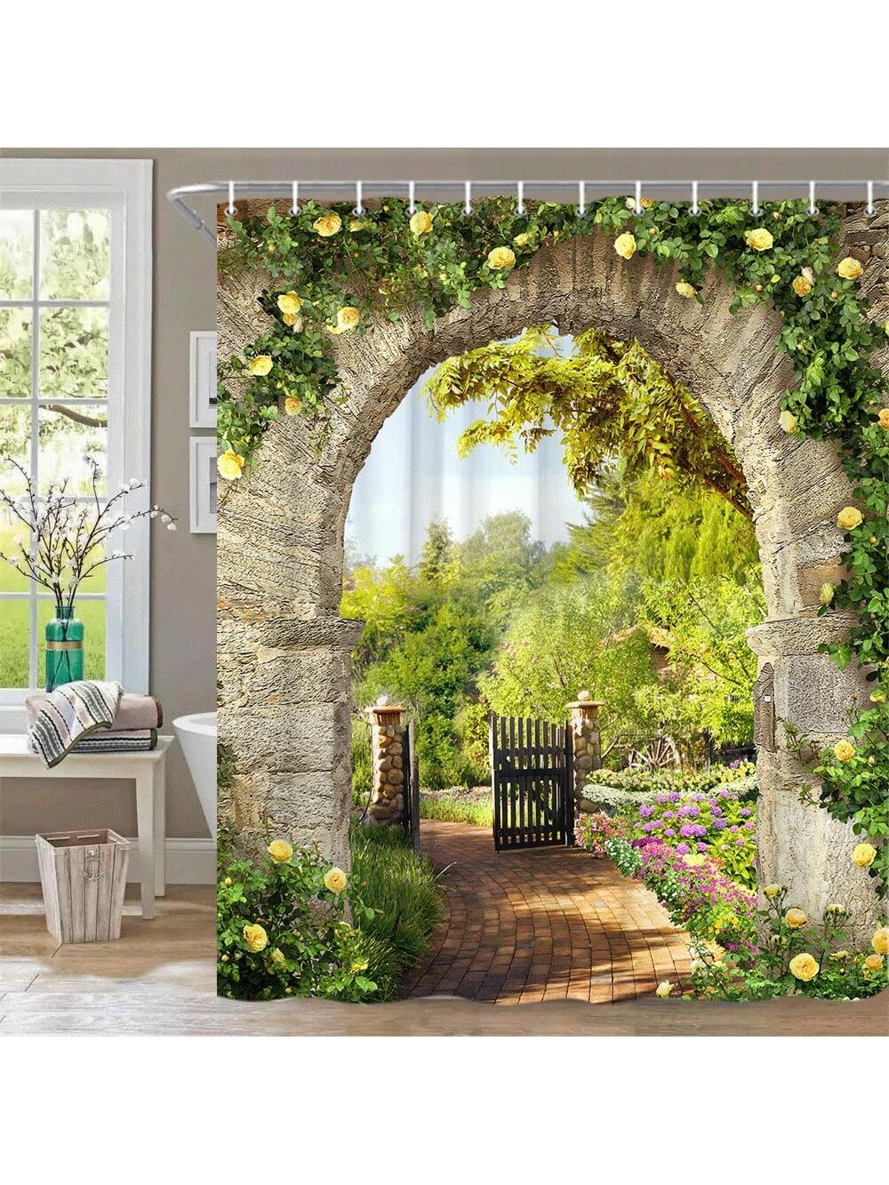 Rustic Countryside Shower Curtain: Transform Your Home Bathroom with Garden Scenery and Greenery Florals