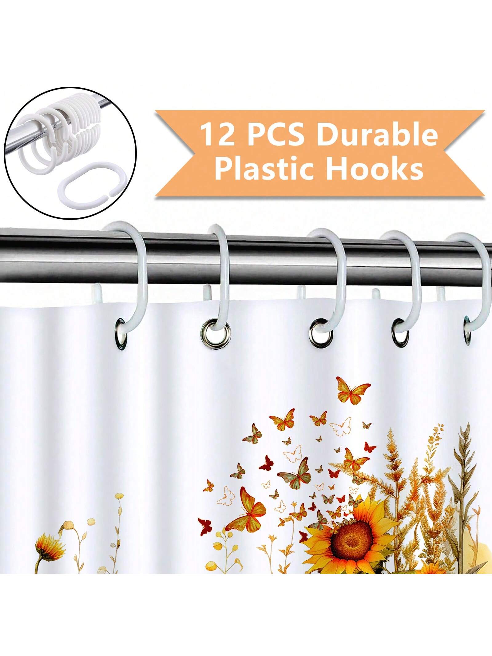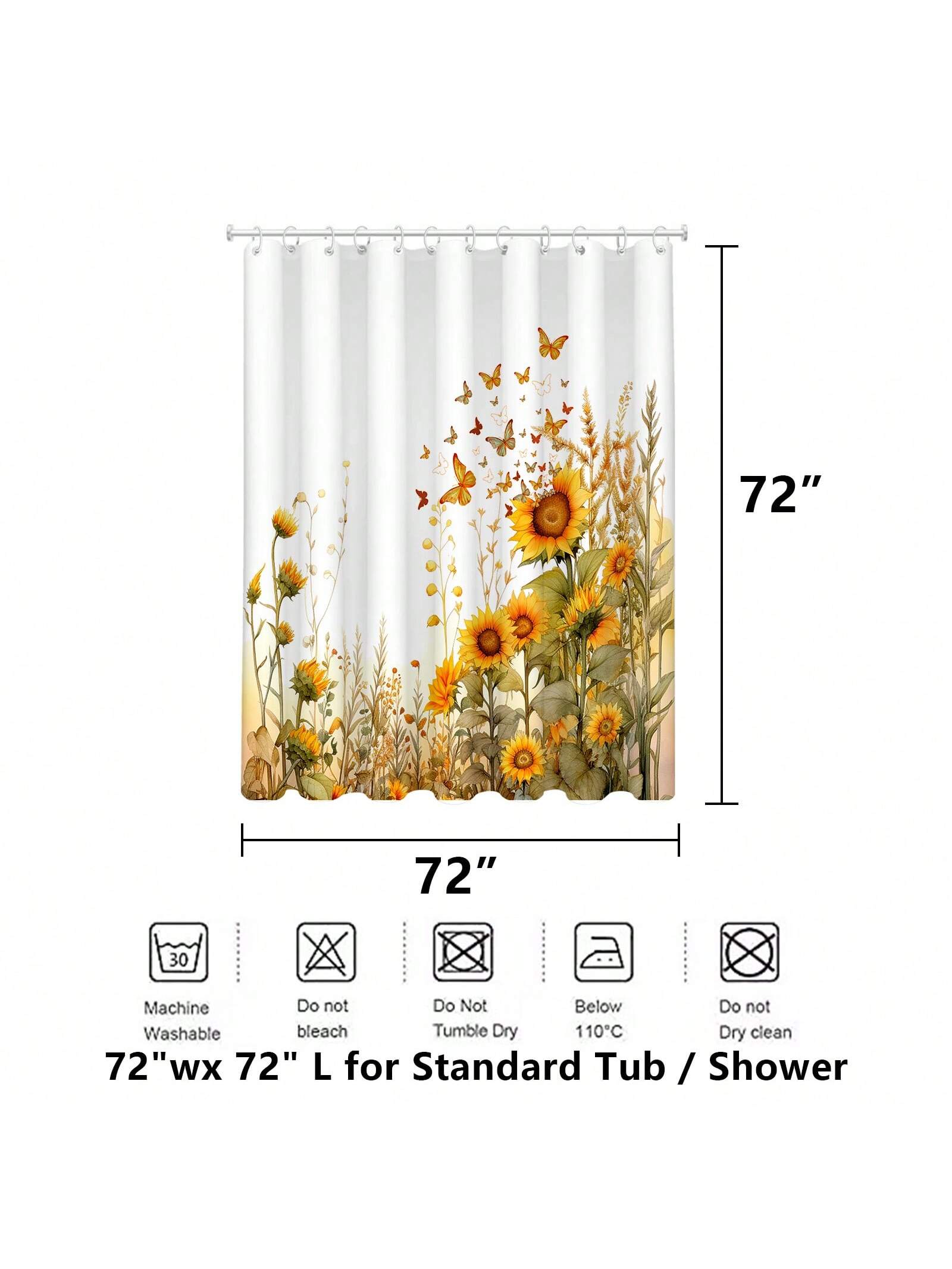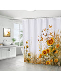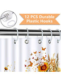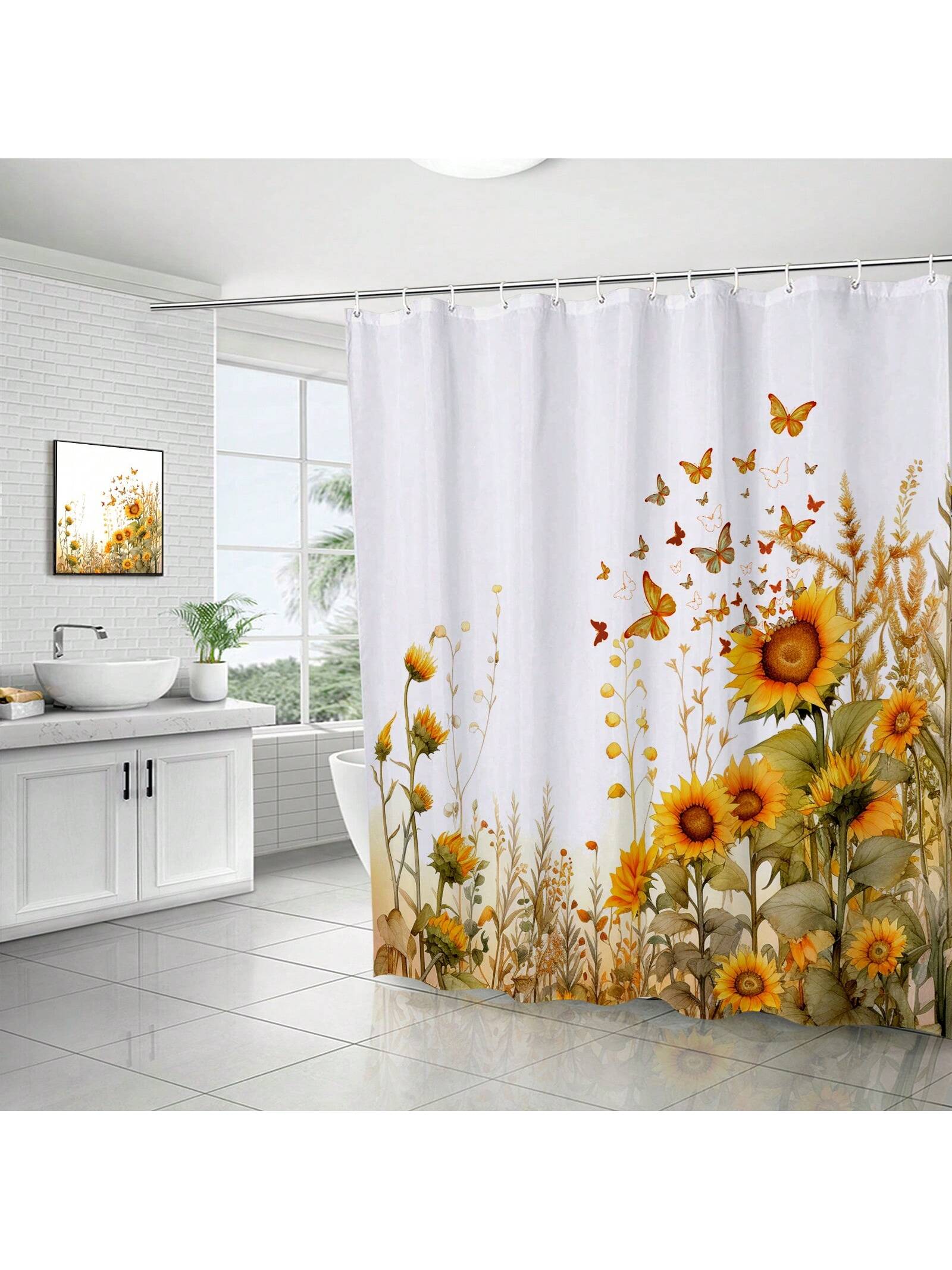 Rustic Floral Warmth: Autumn Sunflower Butterfly Shower Curtain Set