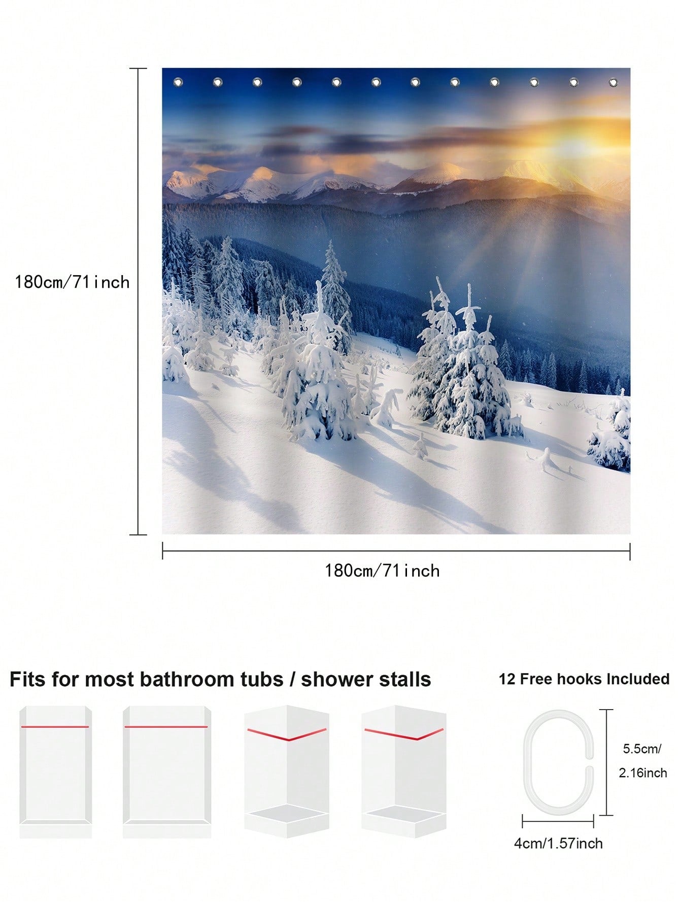 Rustic Winter Wonderland Shower Curtain - Waterproof & Mildew-Proof Farmhouse Bathroom Decor