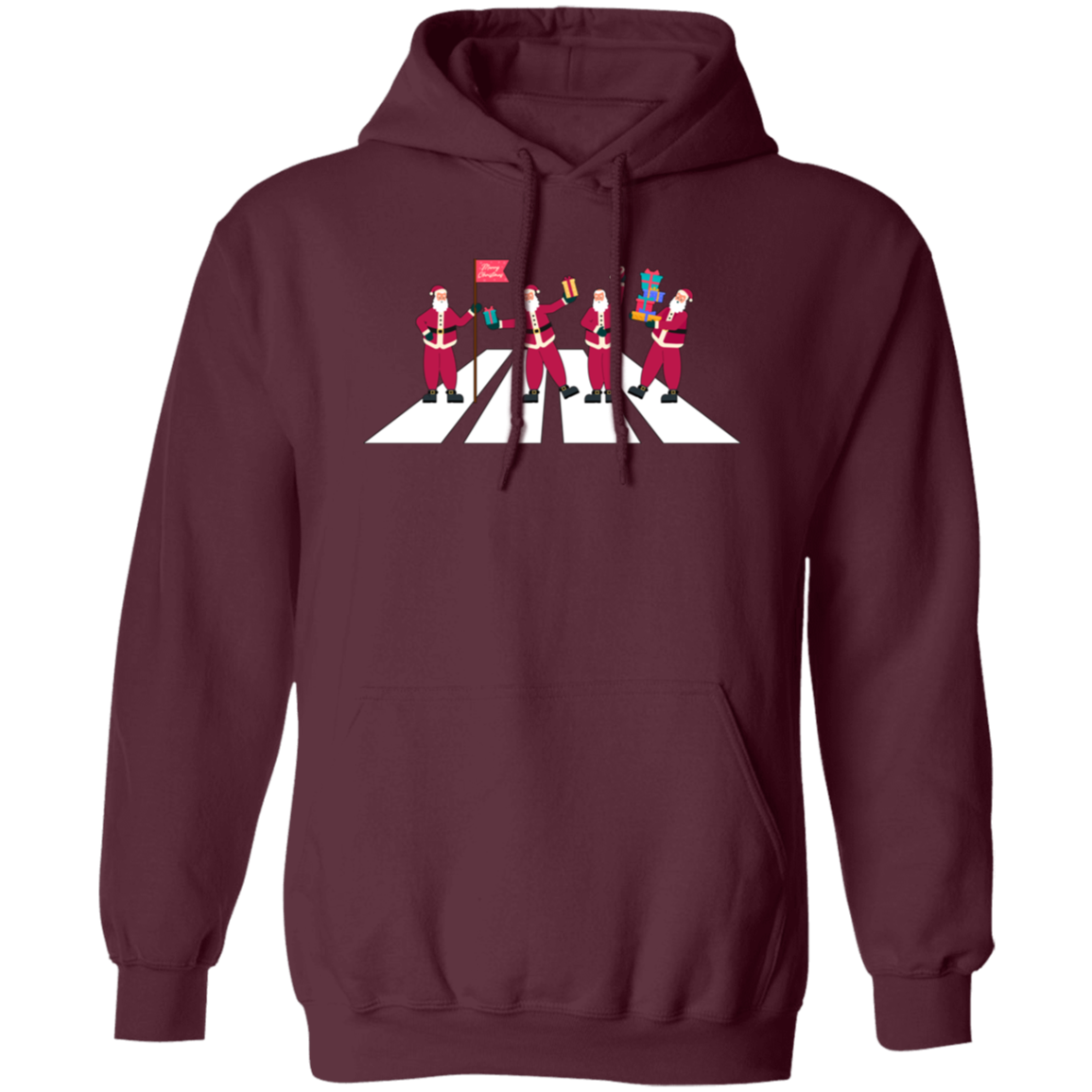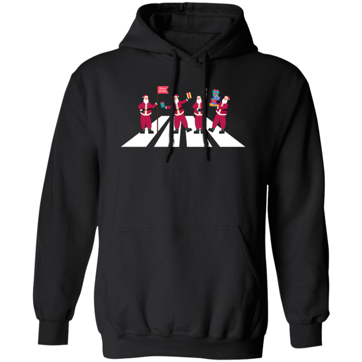 Santa Gift, Santa Road Crossing, Xmas Gift, Road Scene Christmas Pullover Hoodie