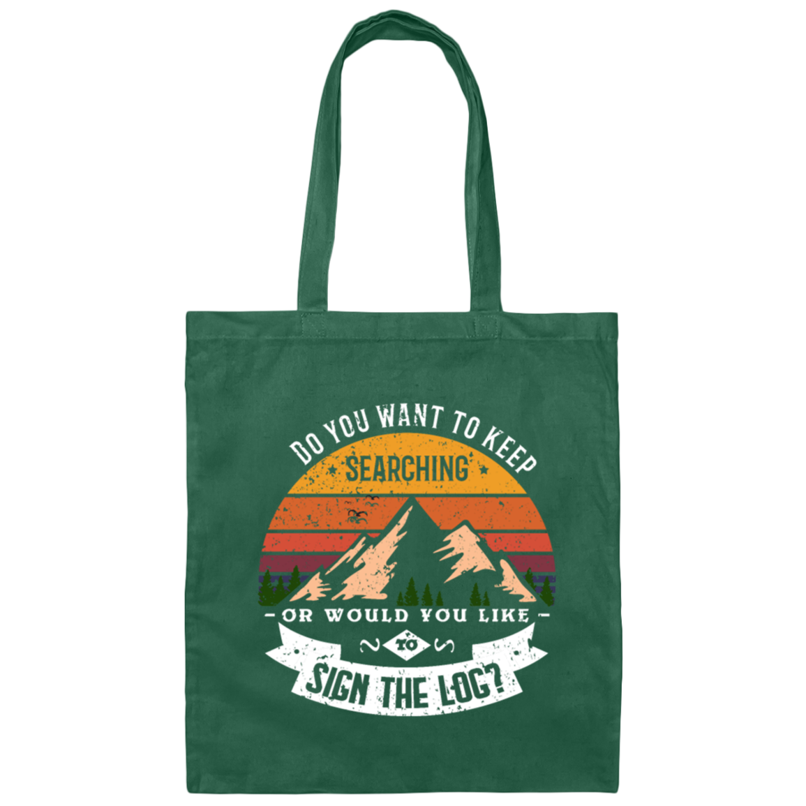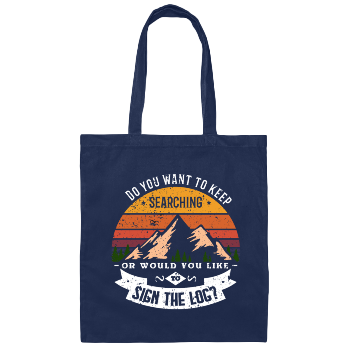 Saying Keep Searching Or Sign The Log, Geocacher, Geocaching Cache Gift Canvas Tote Bag