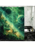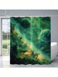 Serene Green Sky Printed Waterproof Satin Shower Curtain – Stylish Bathroom Decor