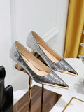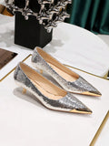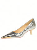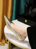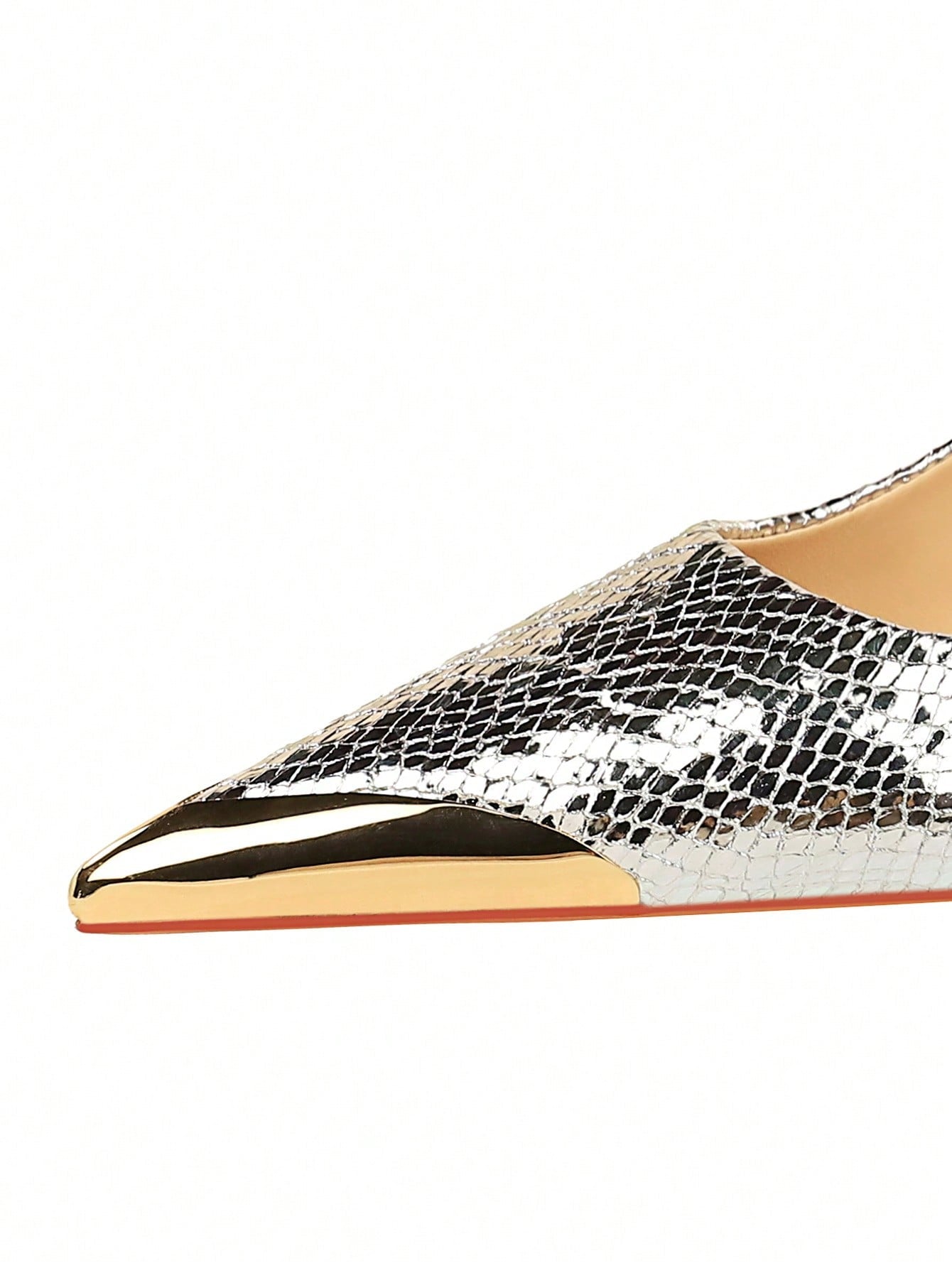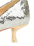 Add a touch of metallic snakeskin to youElevate your style with our Shimmer and Shine: Metallic Snakeskin Party Pumps! These pumps feature a unique combination of metallic snakeskin material and mid heels, adding a touch of glamour to any outfit. Walk with confidence and make a statemer party look with these shimmering pumps. The mid-height heels provide just the right amount of lift, while the unique texture adds a glamorous edge to any outfit. Step out in style with these luxurious and eye-catching shoes.