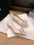 Shimmer & Shine: Holographic Pearl Bow Pointed-Toe Mini High Heels