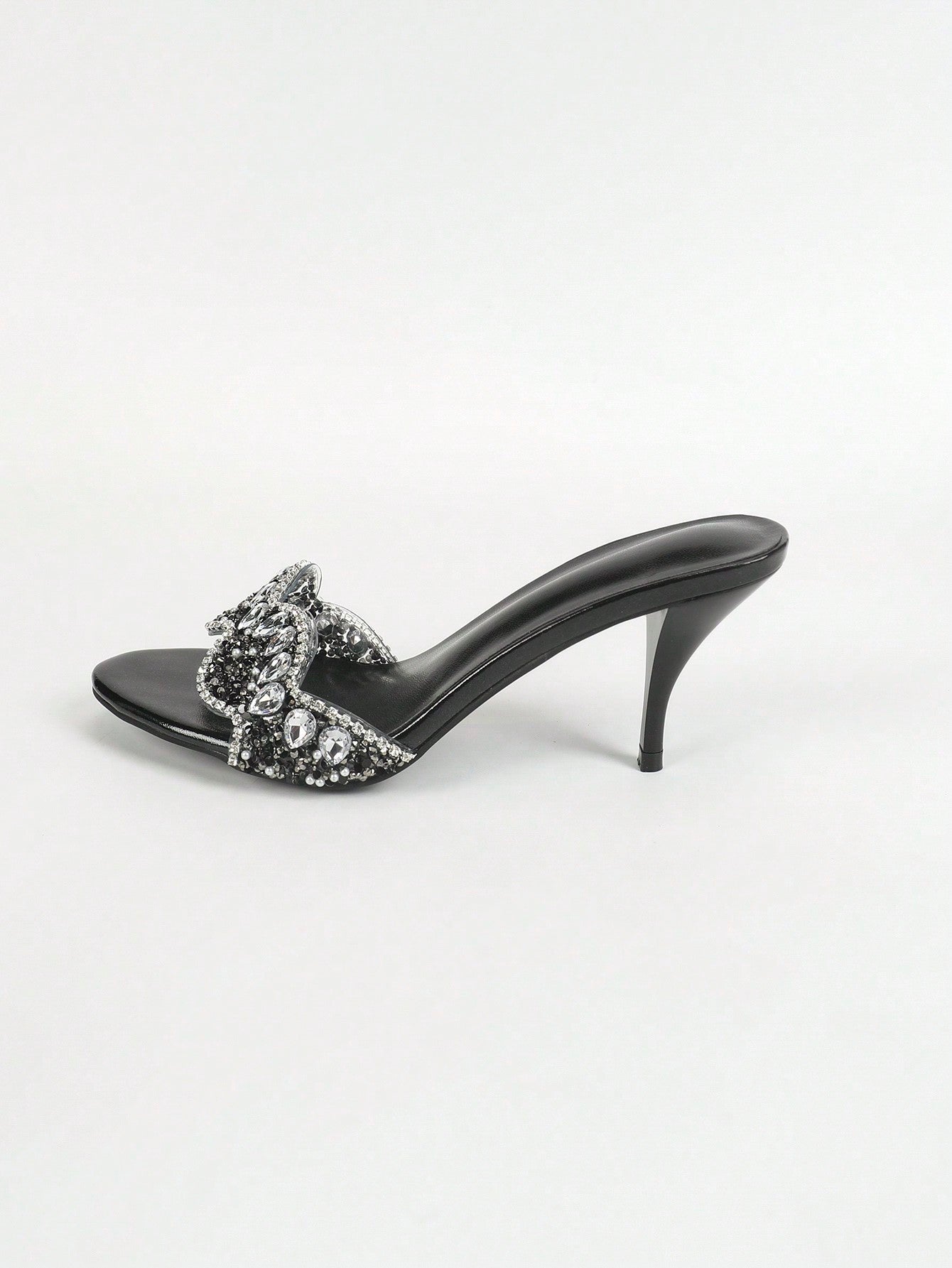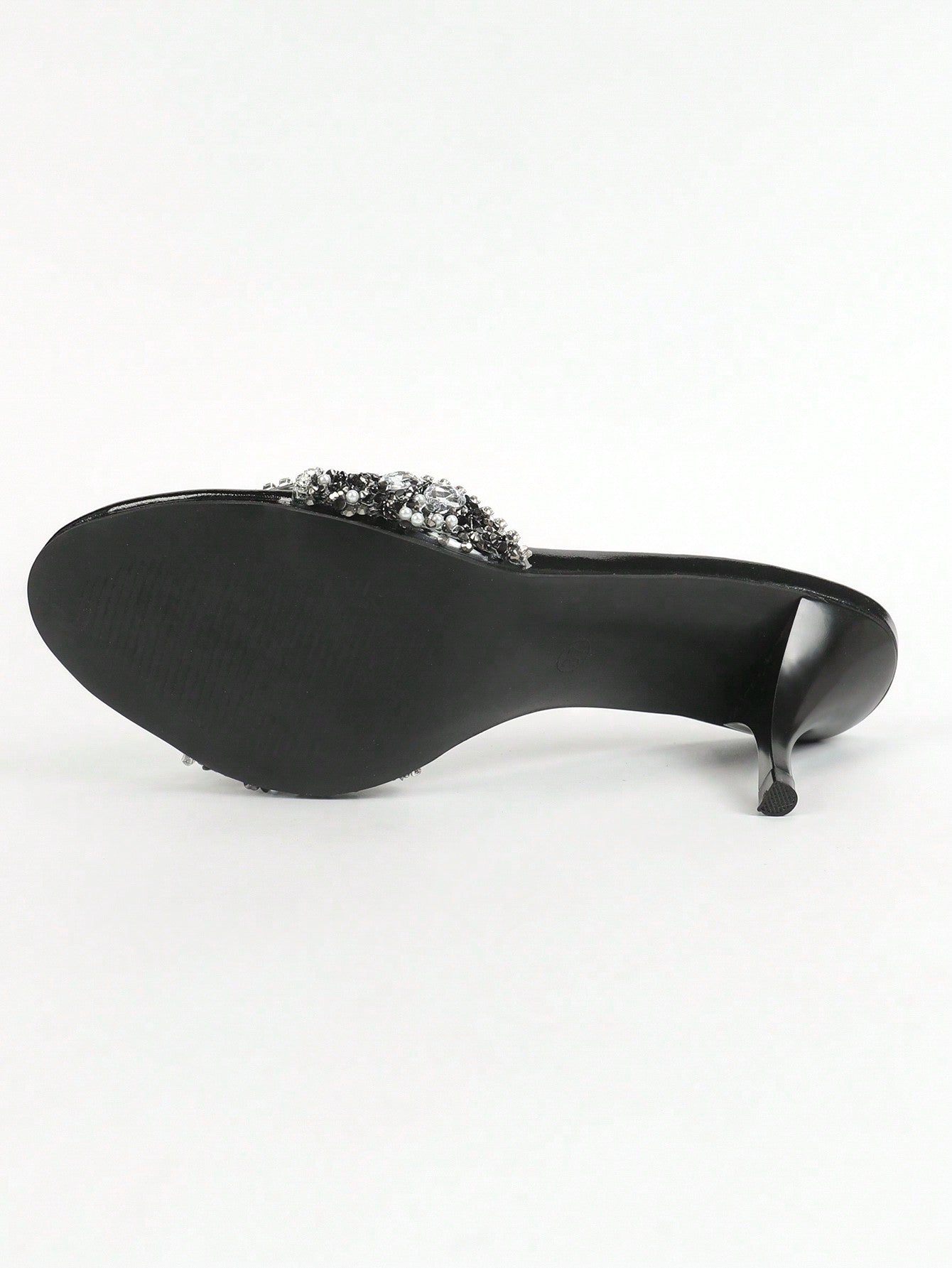 Sandals. These stylish sandals are not only perfect for parties and gatherings, but also provide a touch of glamour with their sparkling rhinestones. The round toe design adds comfort, making these a must-have for any special occasion."
