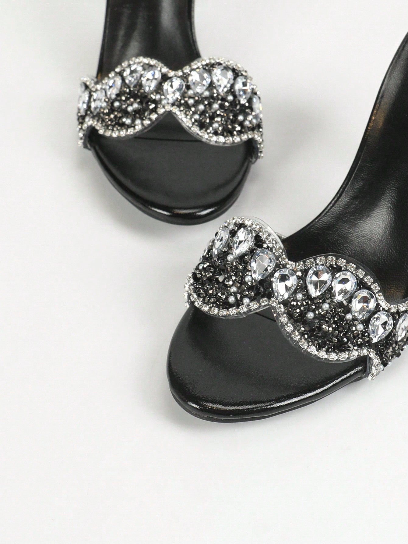Shimmering Rhinestone Round Toe High Heeled Sandals - Perfect for Parties and Gatherings