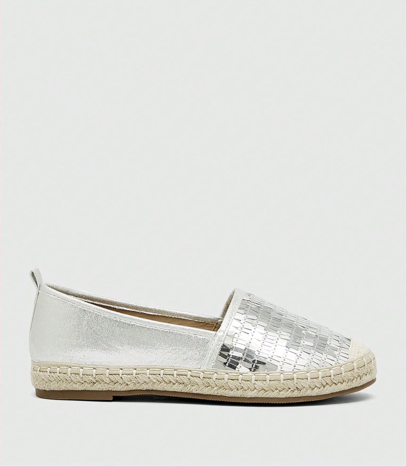 Shimmering Steps: Metallic Detail Espadrille Flats for Summer Vacation