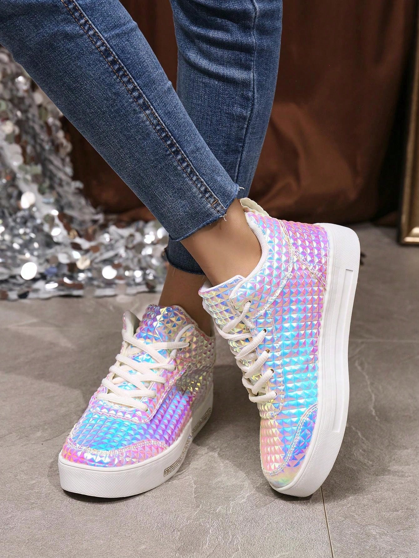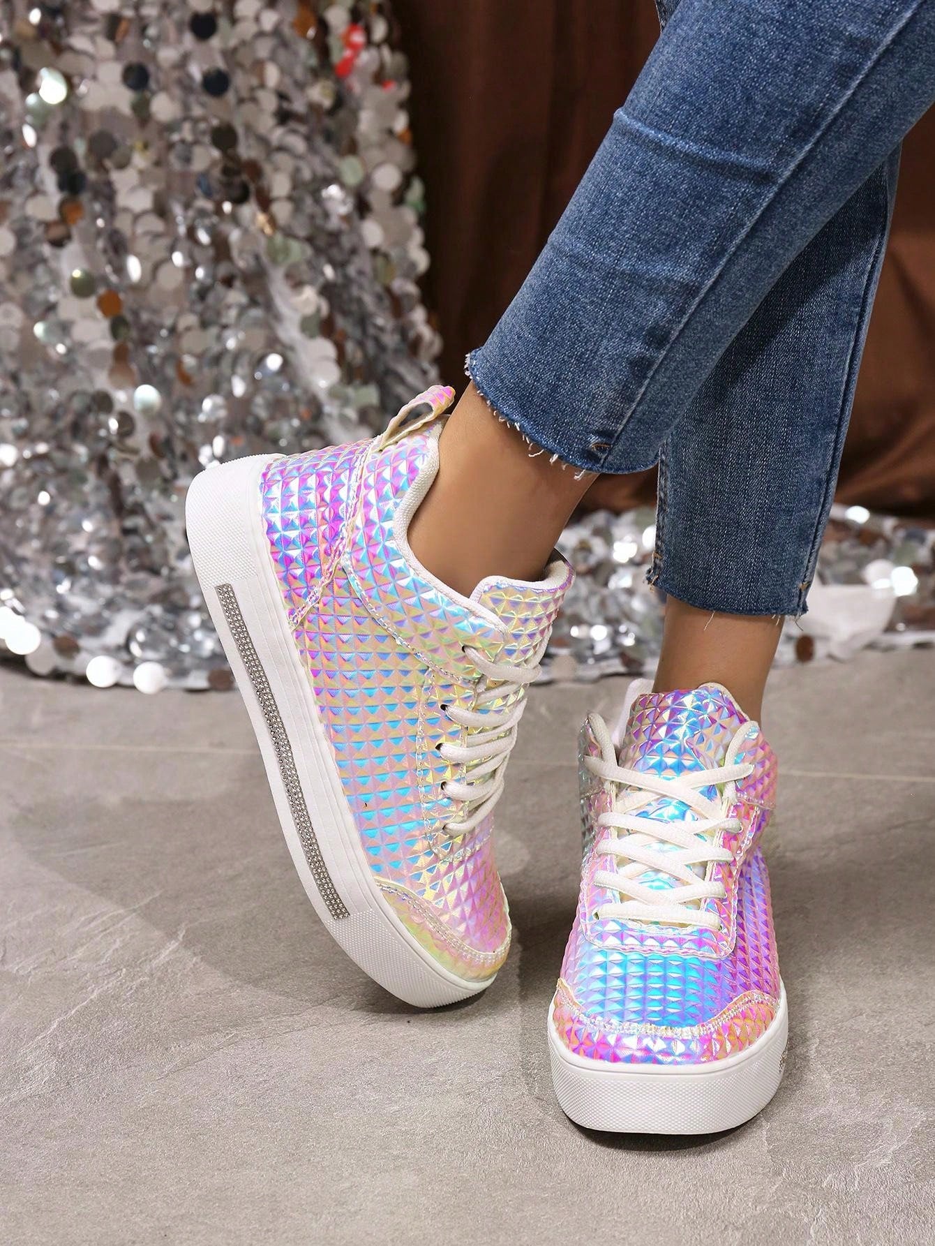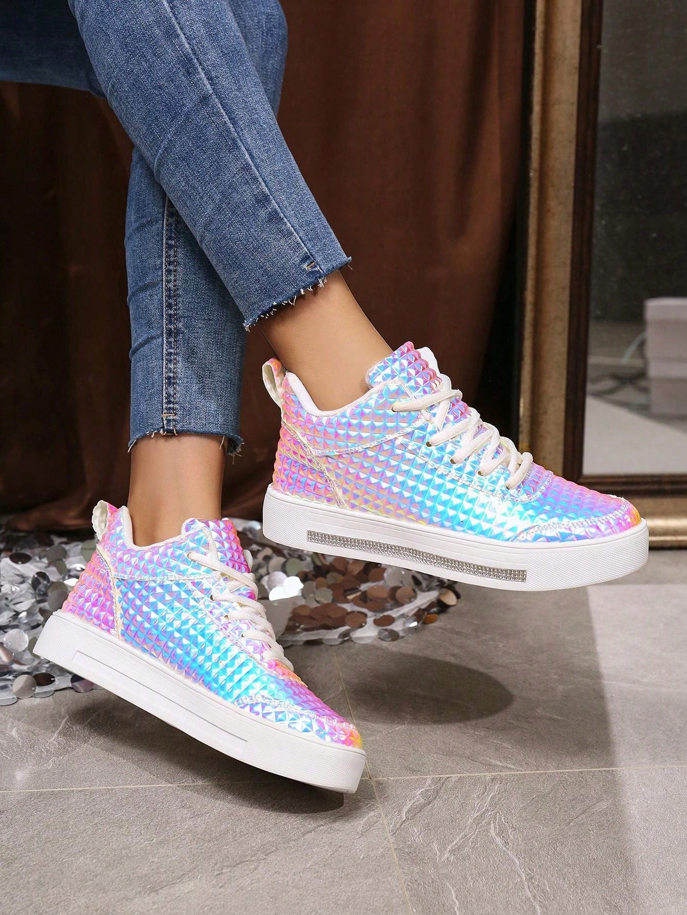 Shiny High-Top Comfort: Fashion Sneakers for Versatile Outdoor Style