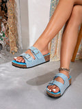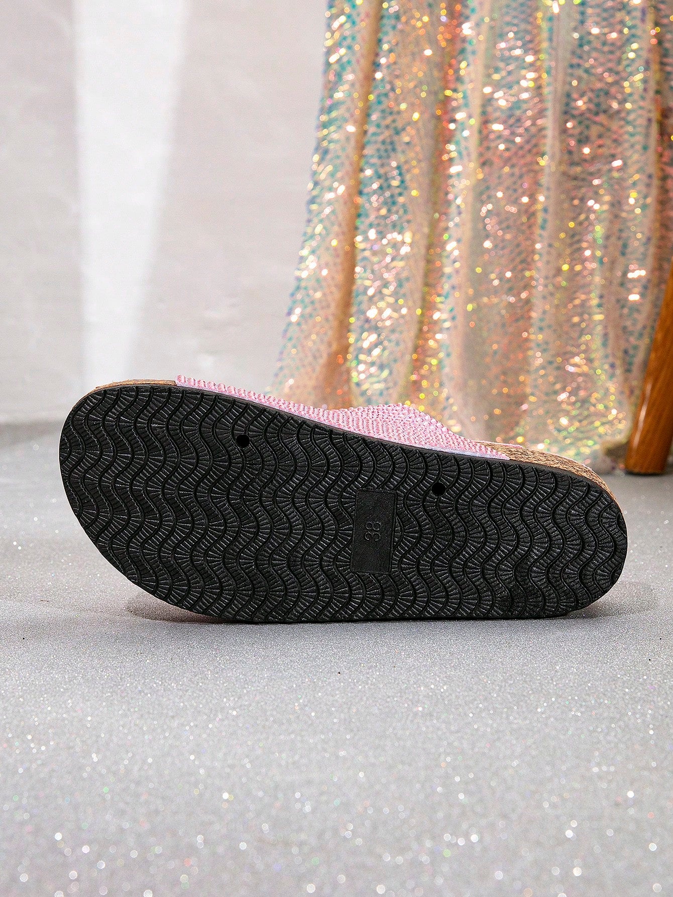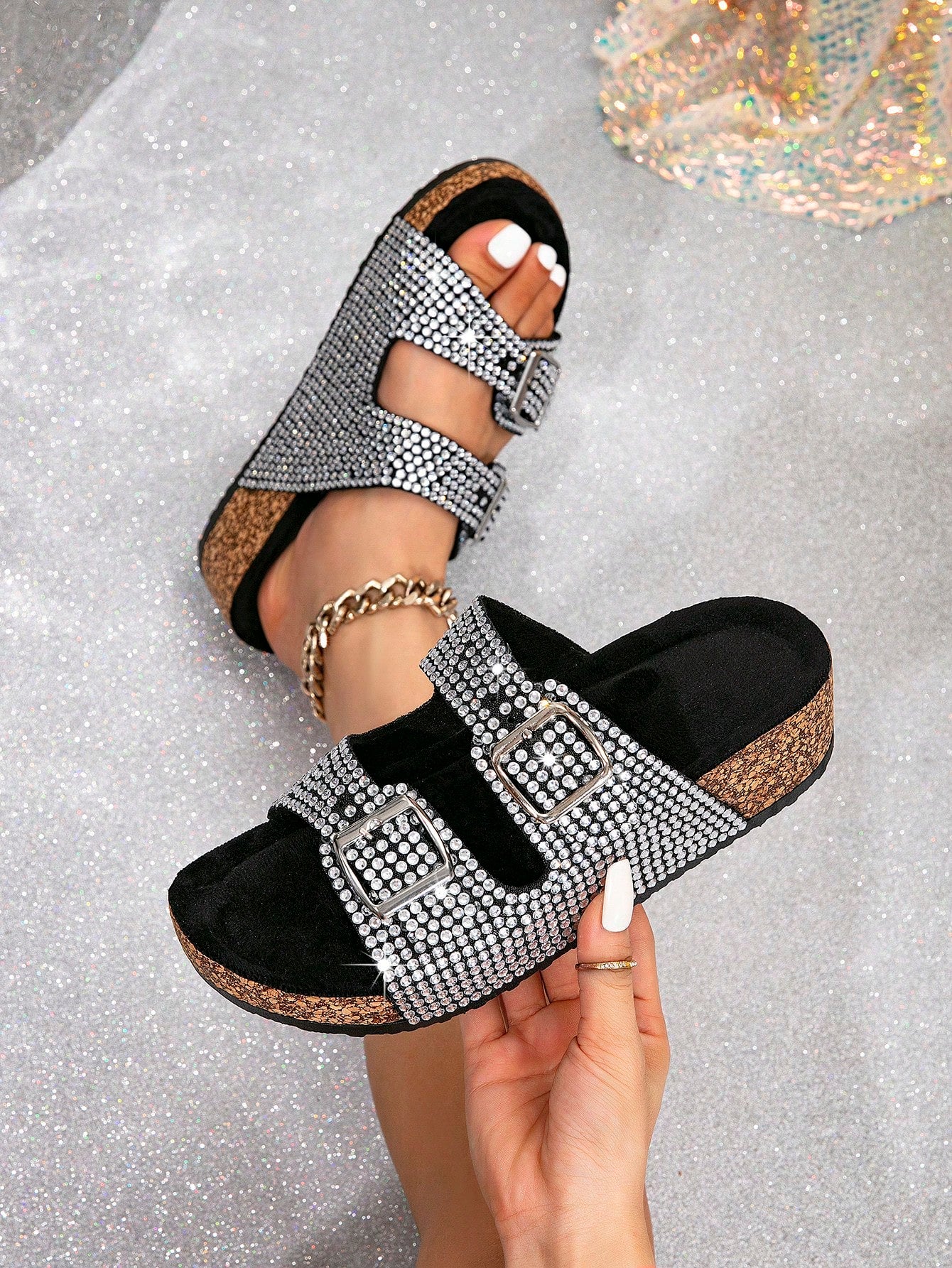 Shiny Rhinestone Platform Sandals: Elevate Your Casual Outfits & Beach Vacation Looks with Beautiful Wood Grain Design