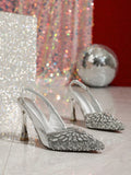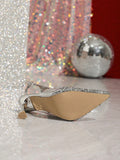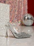Silver Elegance: Handmade Crystal Pointed Toe Pumps for Women