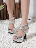 Silver Siren: Stunning Waterproof Platform High Heel Pumps with Cross Straps