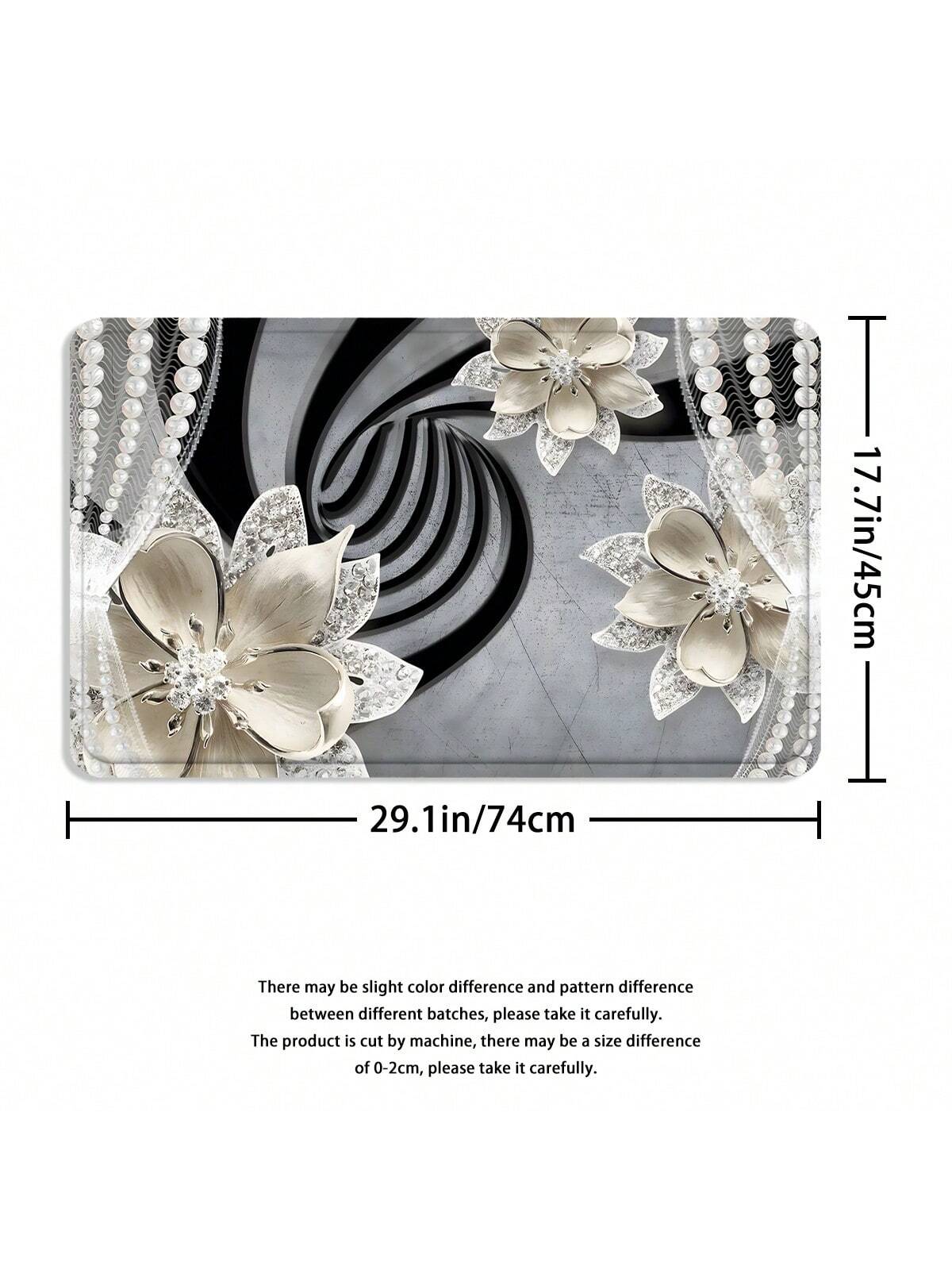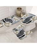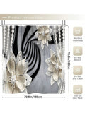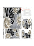 Simplistic Floral Beaded 3D Print Shower Curtain Set with Waterproof Mat and Rings