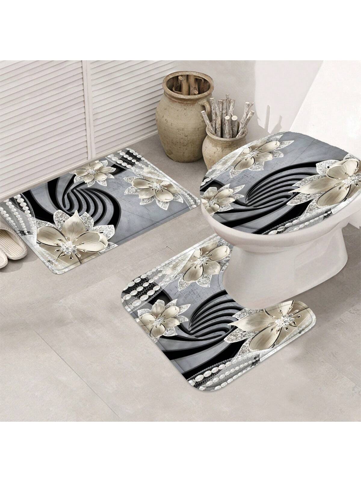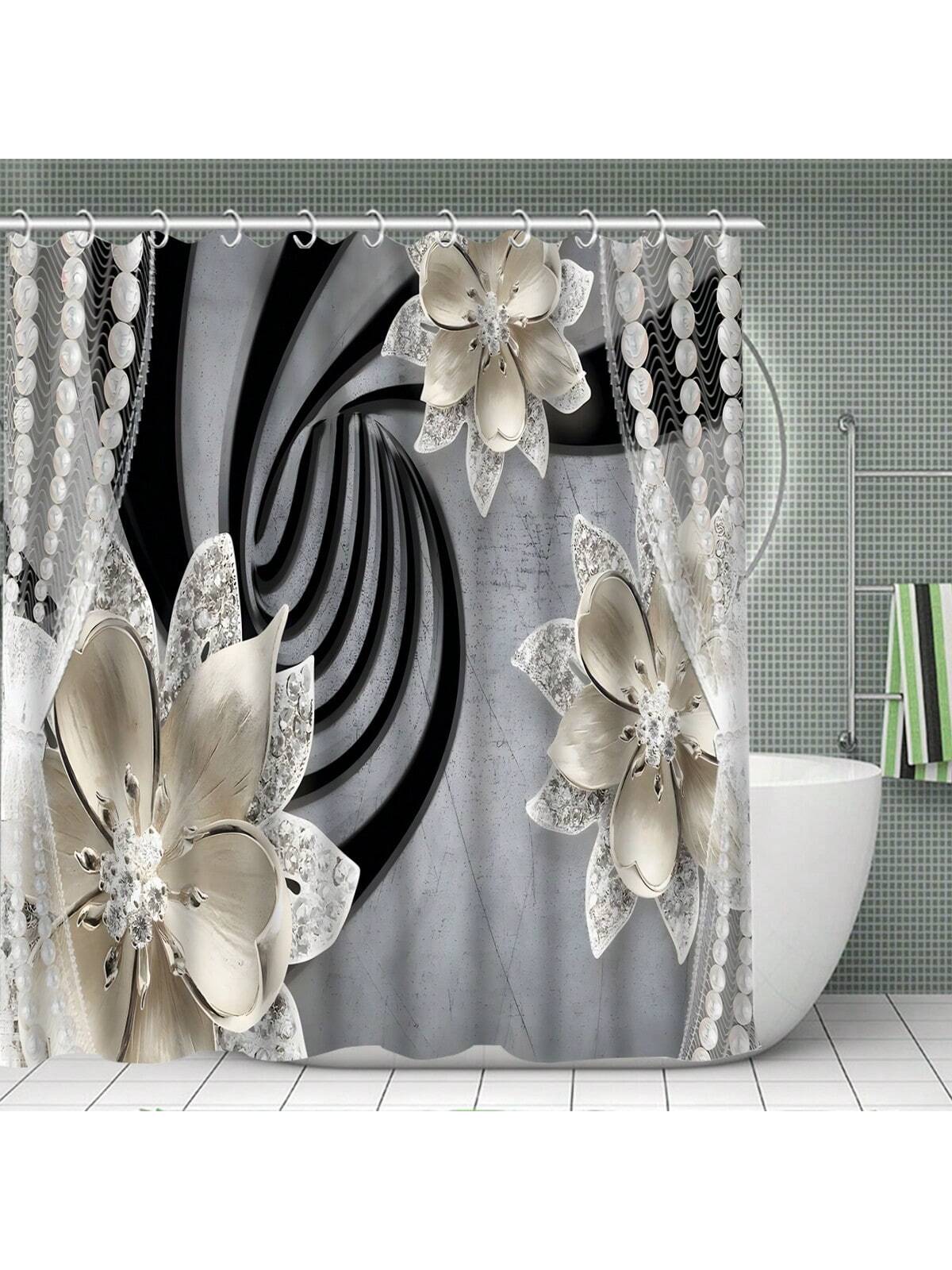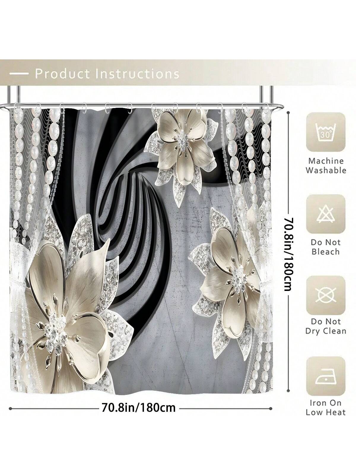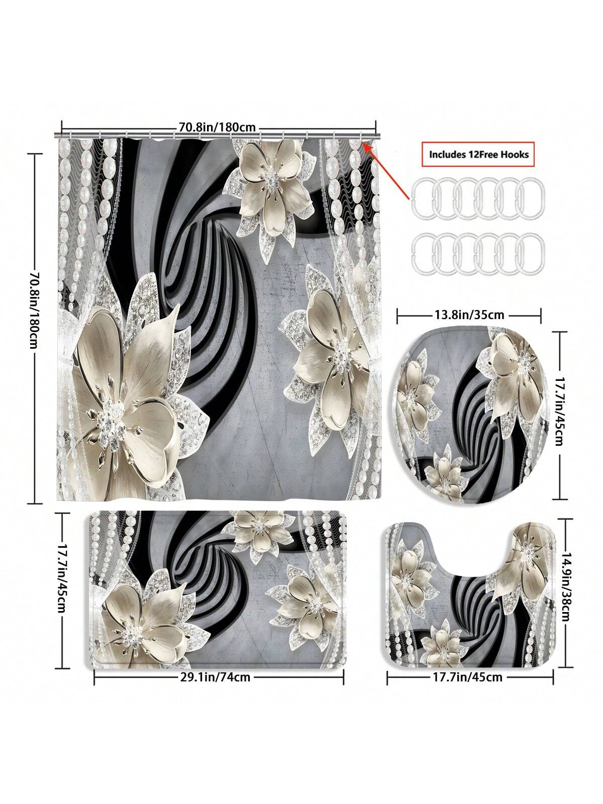 Shower Curtain Set. The set includes a waterproof mat and rings for easy installation. The elegant 3D floral print adds a touch of sophistication to your shower experience. Stay dry and stylish with this must-have set."