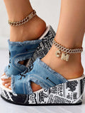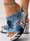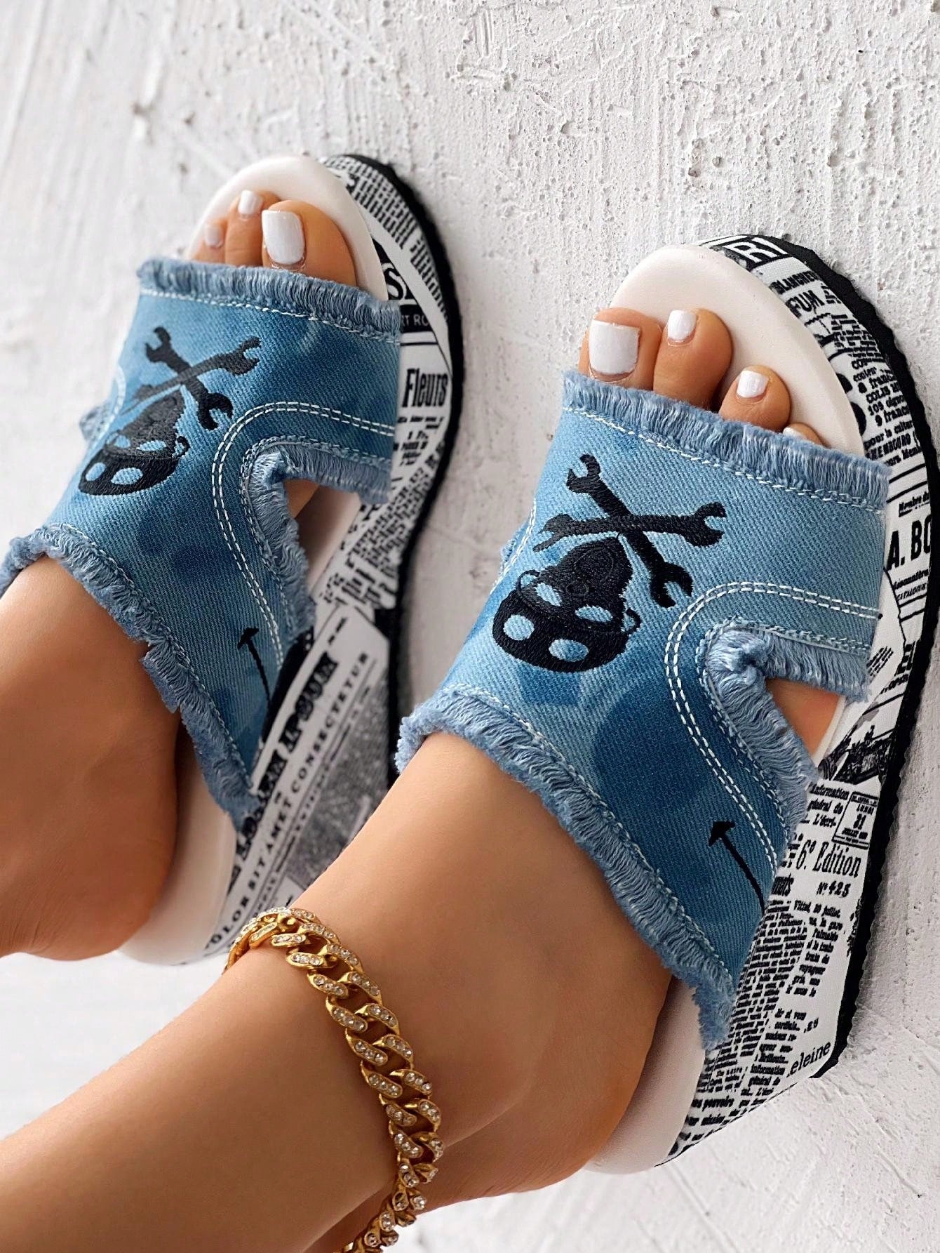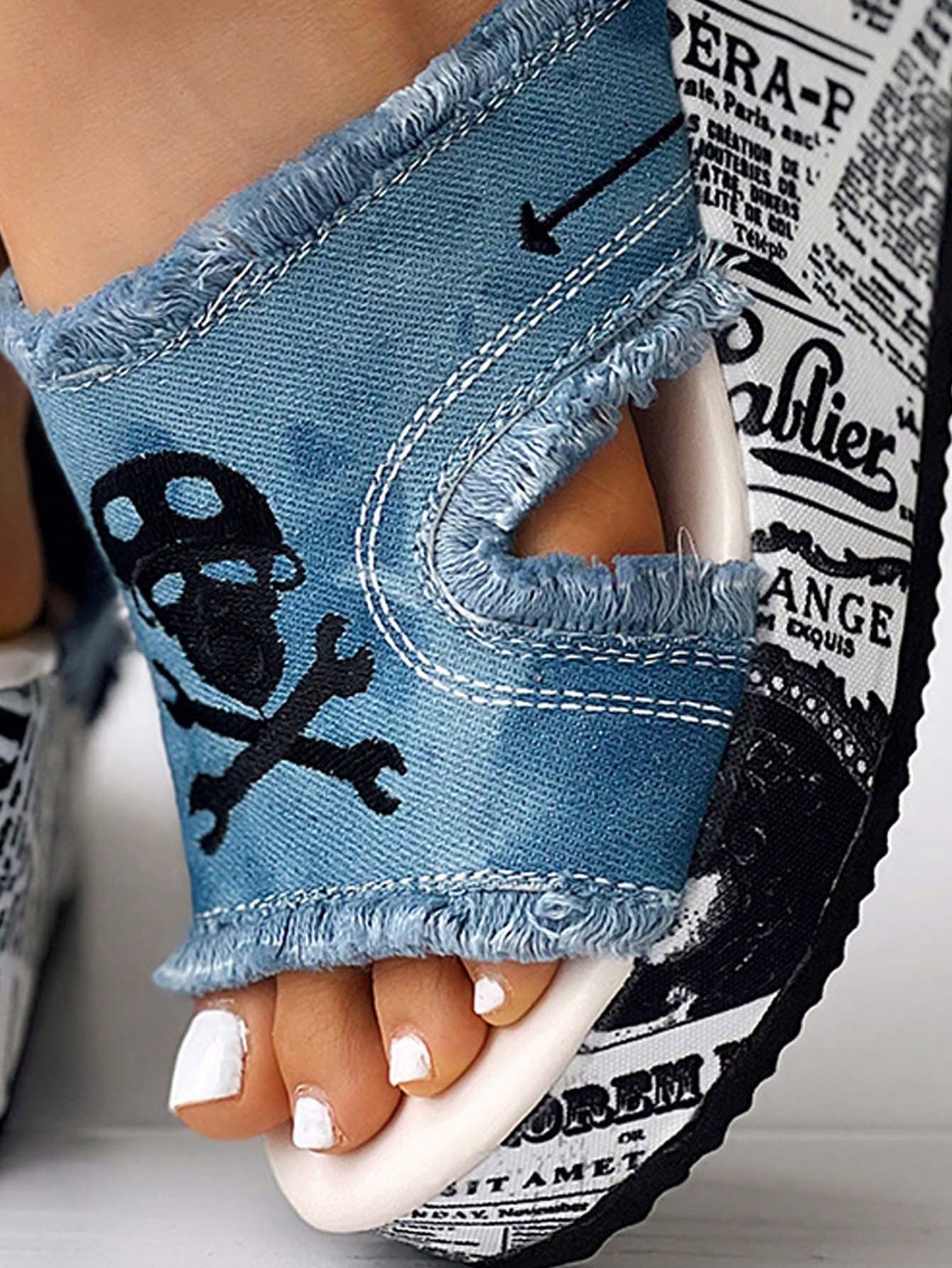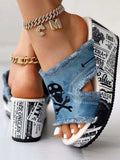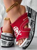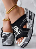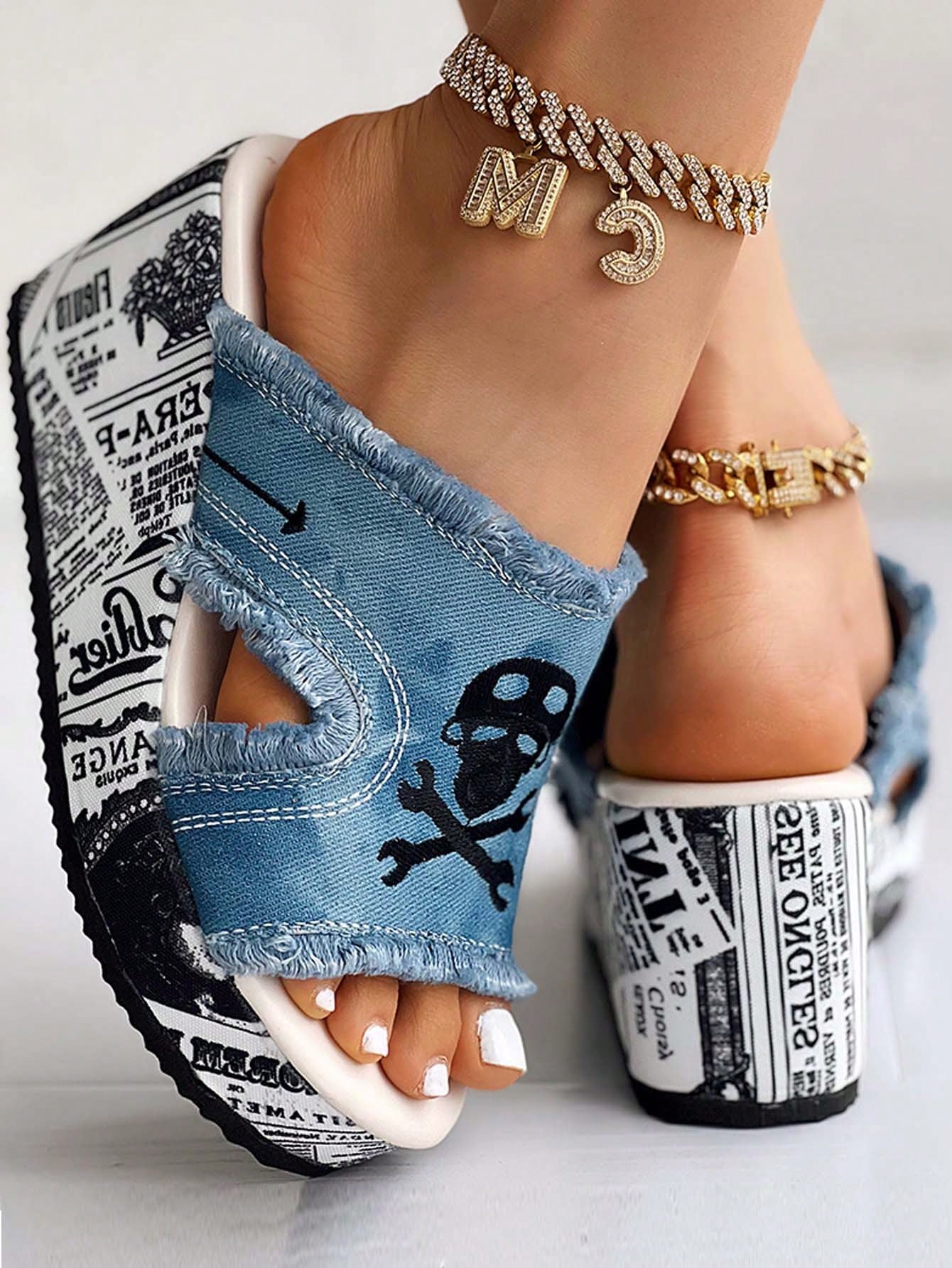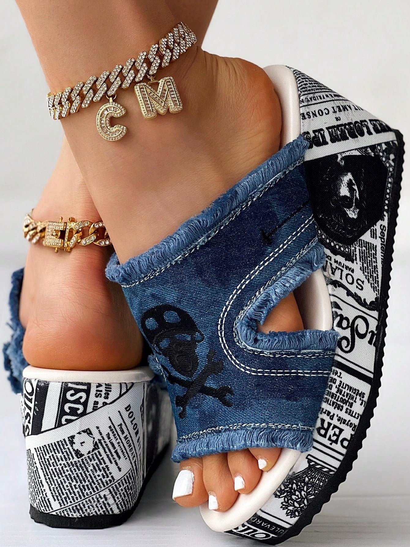 Skeleton Newspaper Print Wedge Sandals: Glam Up Your Halloween Look!